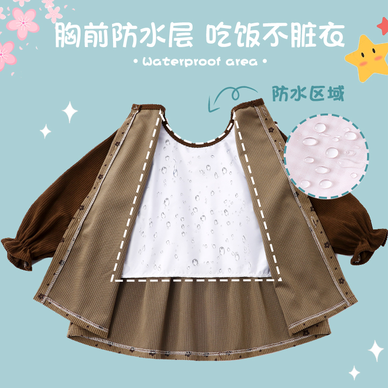 秋冬外穿女宝宝罩衣儿童吃饭围兜婴儿饭兜防水防脏公主裙围裙护衣