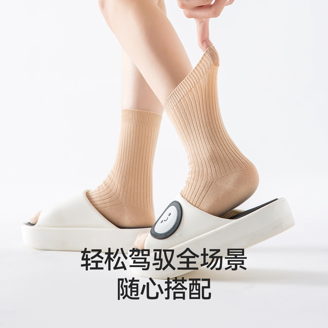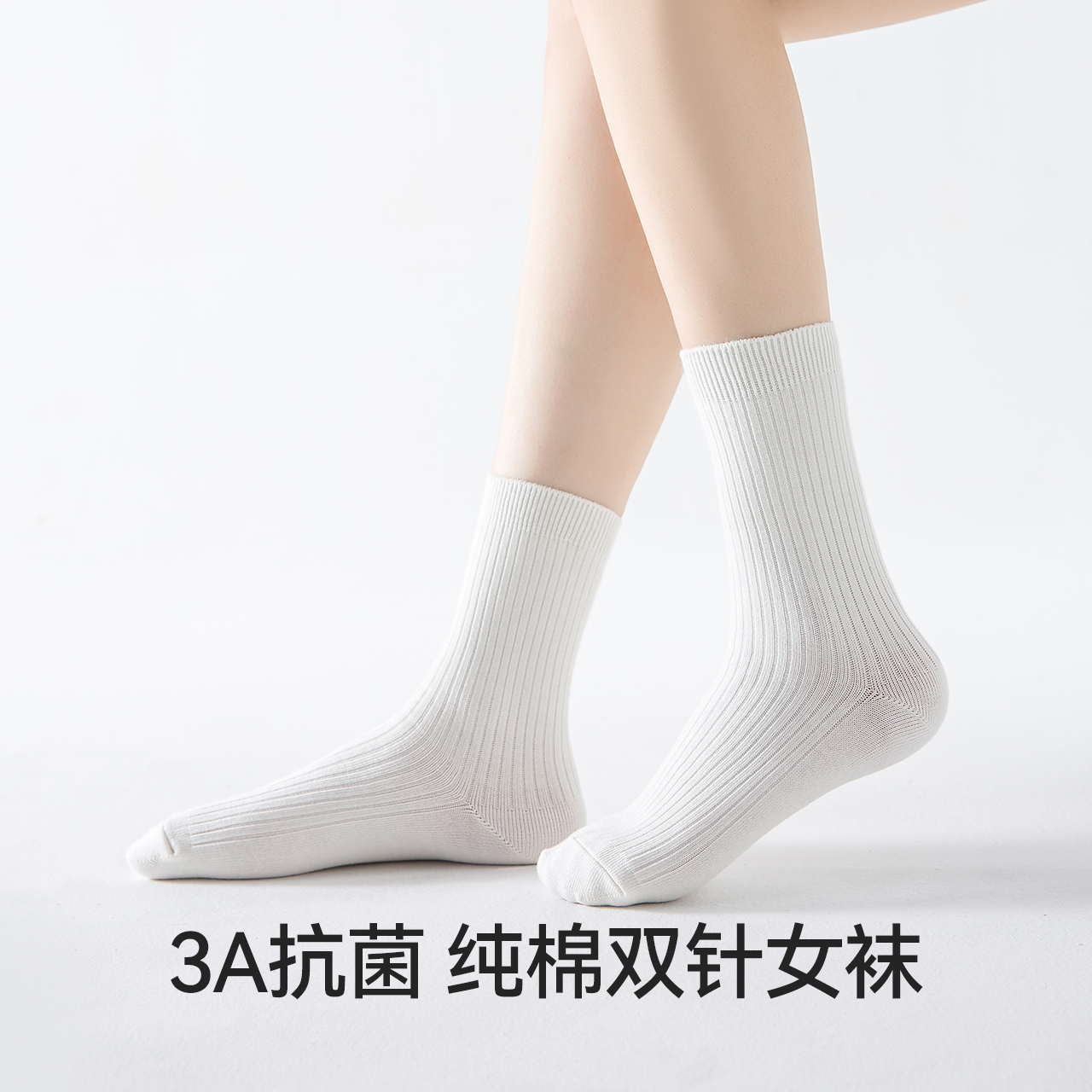 耐尔袜子女士中筒袜秋冬纯色棉袜无骨堆堆袜黑白色抗菌舒适长袜潮