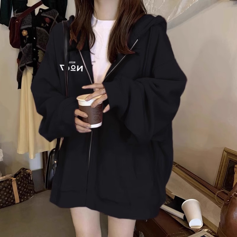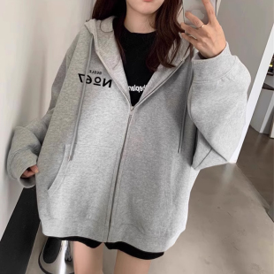 宽松胖mm大码 春秋薄款 显瘦酒红色连帽卫衣 复古外套女拉链开衫 美式