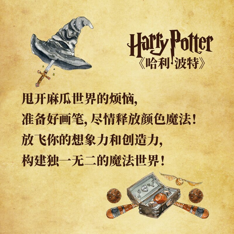 穿越魔法世界霍格沃茨魔法学校斯莱特林学院成人儿童解压周边线稿图画册填色书籍哈迷正版 哈利波特官方涂色书 霍格沃茨魔法学校