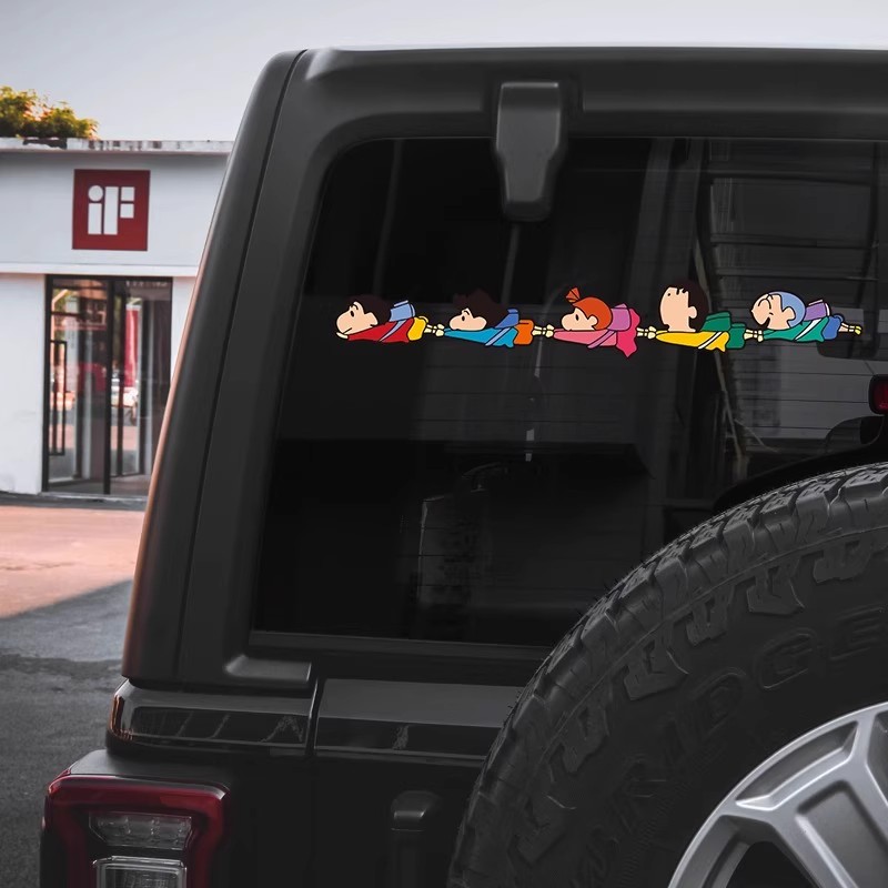 蜡笔小新电动车贴纸个性 饰细长条划痕遮挡 创意可爱卡通机车贴装