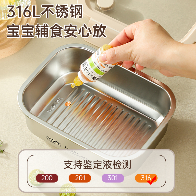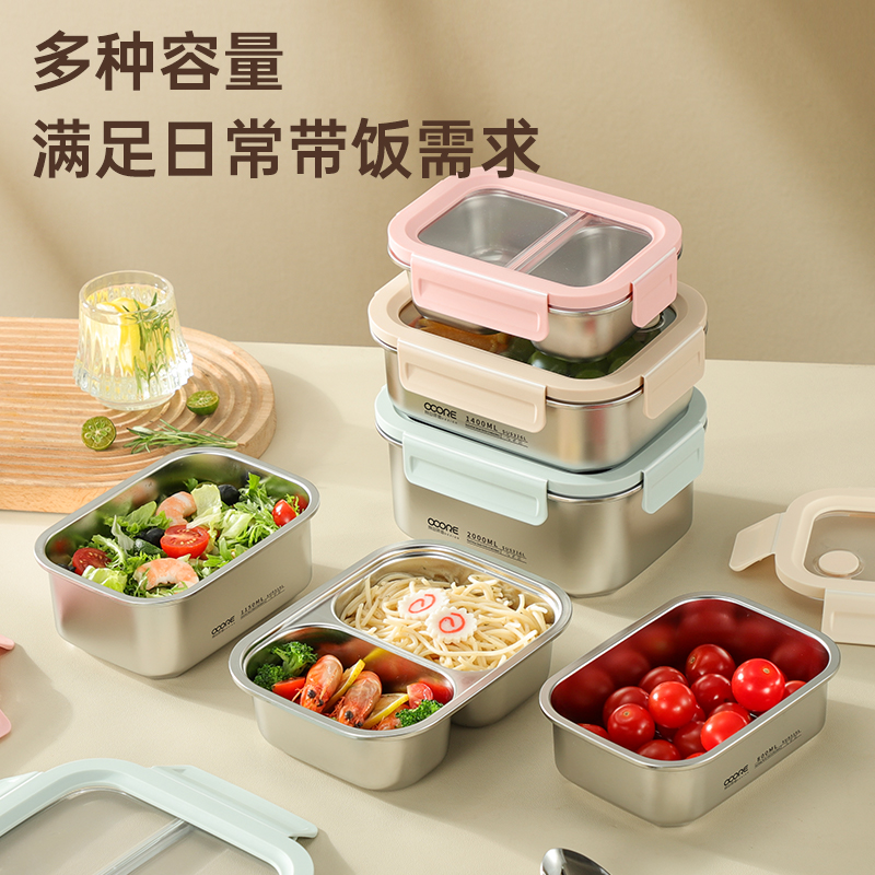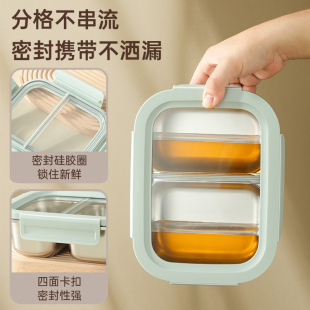 316L不锈钢饭盒可拆卸盖冰箱收纳盒密封外带水果野餐便当盒带饭盒