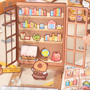 提拉多微缩场景合集本造景贴纸手帐贴纸场景小贴纸3D立体微缩小屋女孩儿童益智玩具diy手账贴纸装 饰创意贴画
