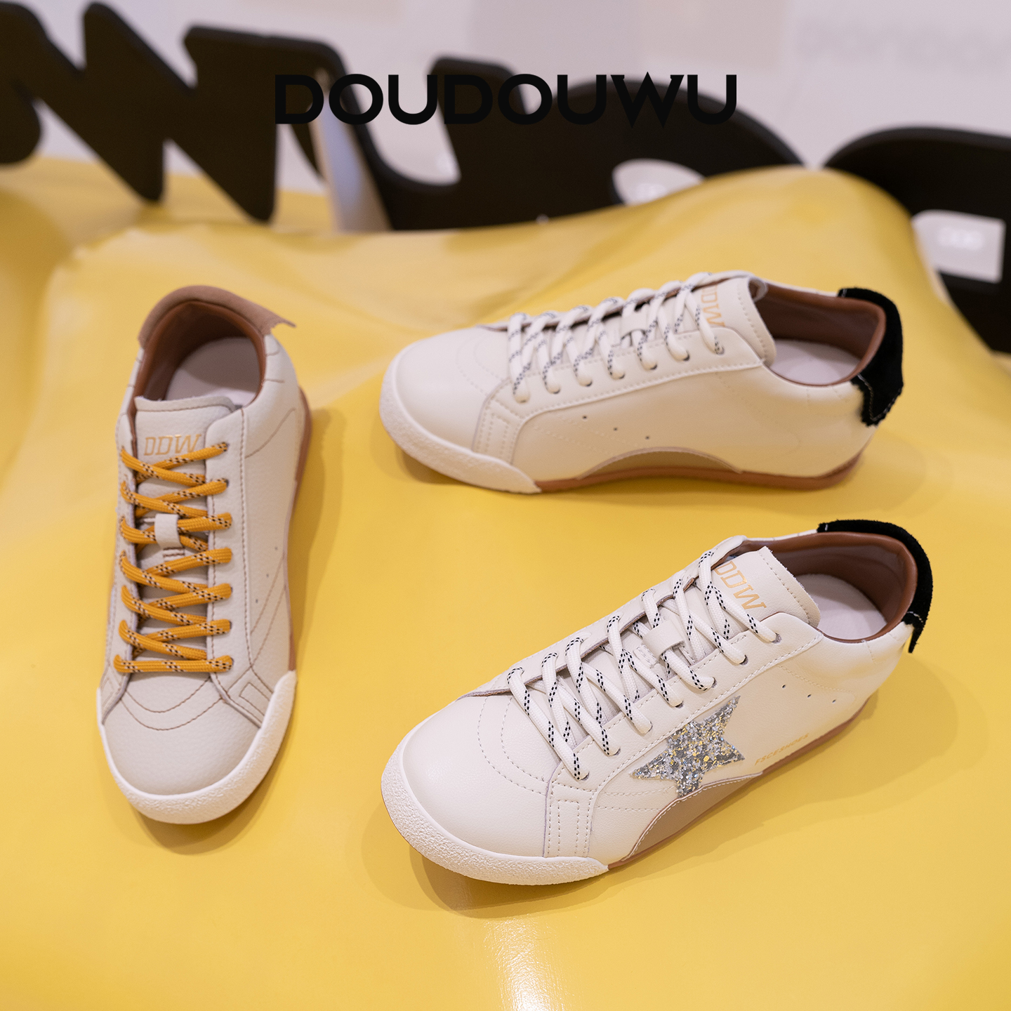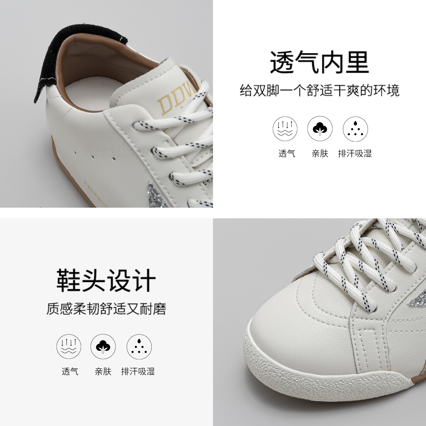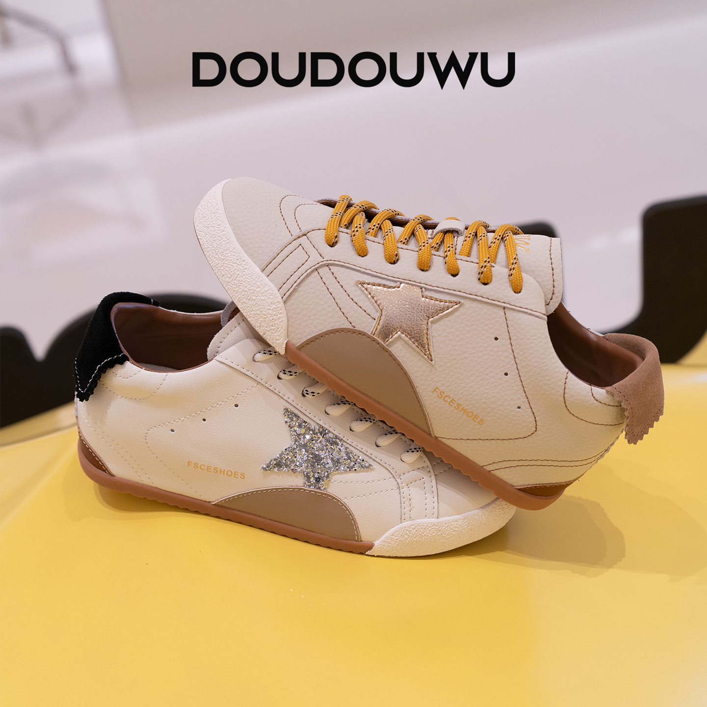 圆头系带软底休闲板鞋 豆豆屋内增高时尚 新款 2025秋季 女 星星阿甘鞋