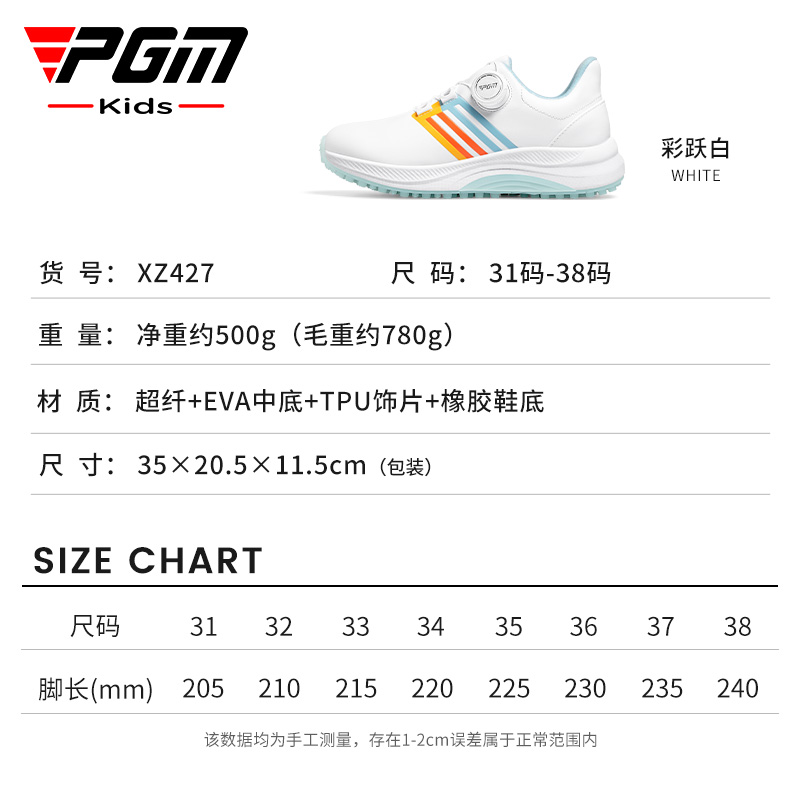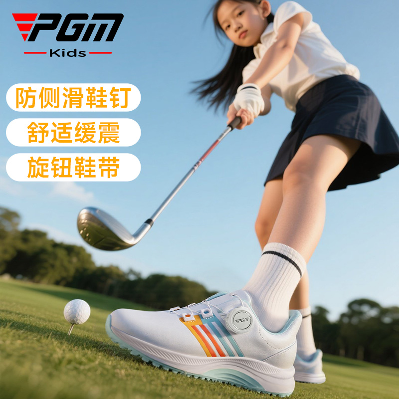 带男童运动鞋 青少年防水防侧滑耐磨女童旋钮鞋 儿童高尔夫球鞋 PGM