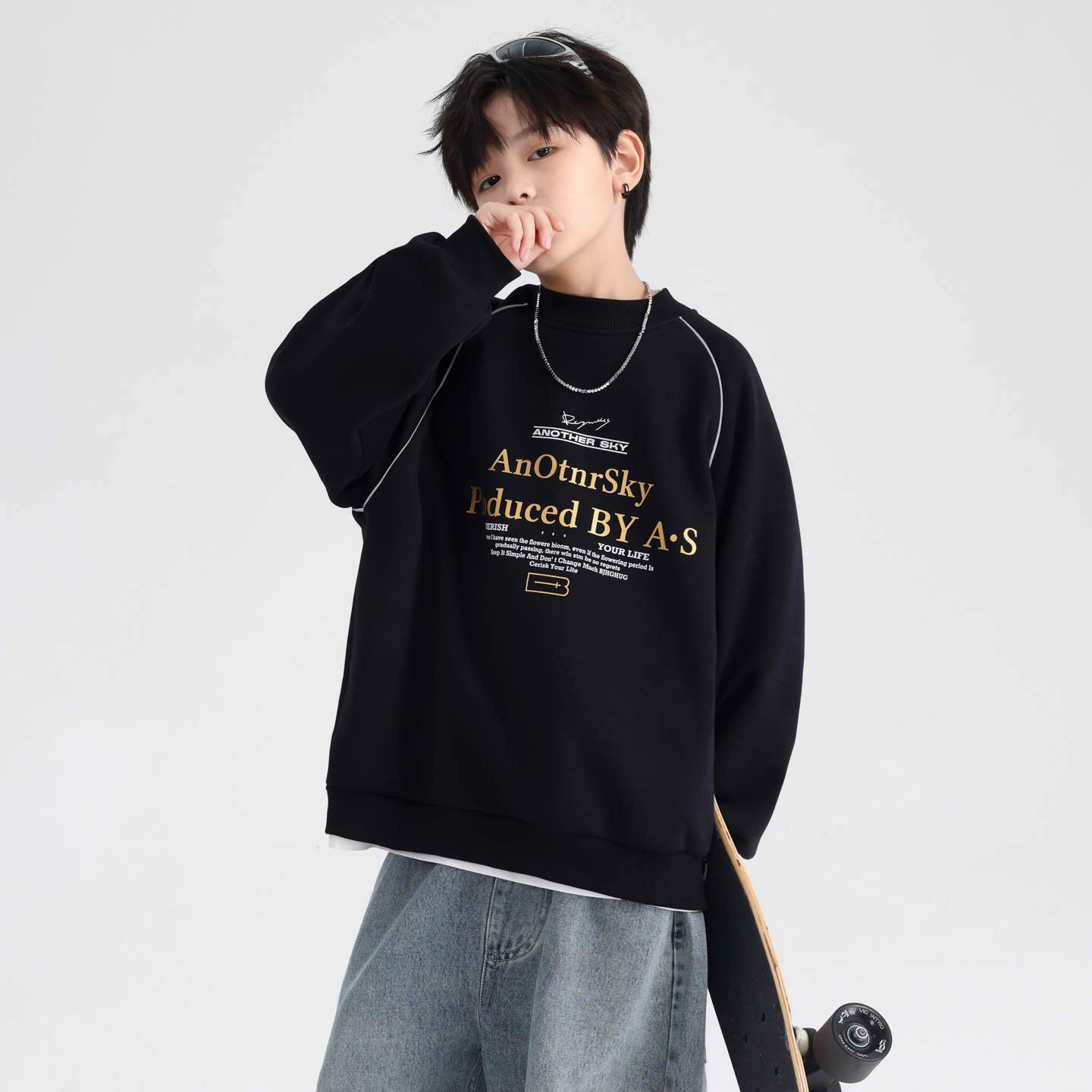 男童秋季 青少年儿童春秋宽松上衣 潮牌黑色运动反光条卫衣2025新款