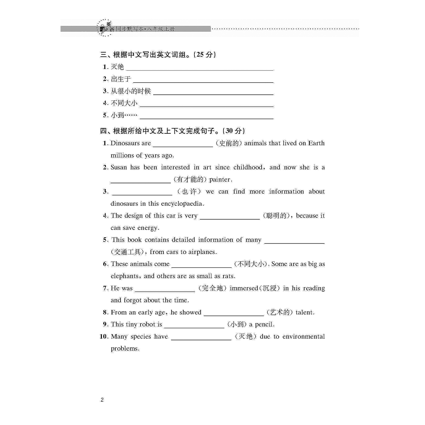 社深圳广州沈阳西安贵州黔东南地区适用 默写核心词汇随堂讲与练上海教育出版 深圳发货2025新版 初中英语同步默写本八年级上册沪教版