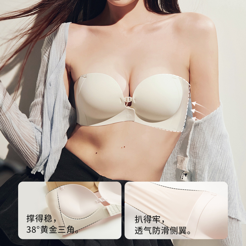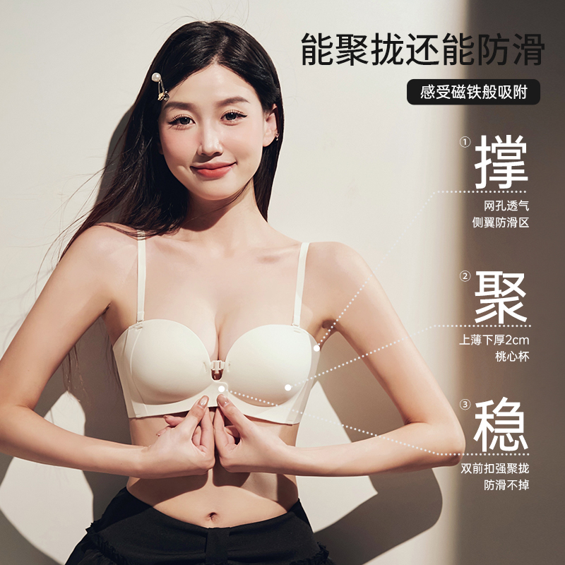 幸棉外扩聚拢粉底液文胸罩漫画小胸显大收副乳蜜桃无痕塑形内衣女