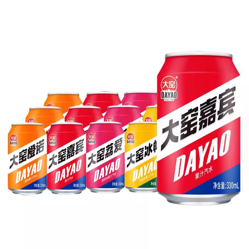 大窑嘉宾果味汽水饮料330ml 24罐易拉罐橙味荔枝凤梨荔枝多口味