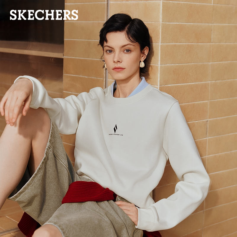 加绒保暖长袖 圆领针织套头卫衣宽松显瘦T恤衫 新款 斯凯奇2025秋季
