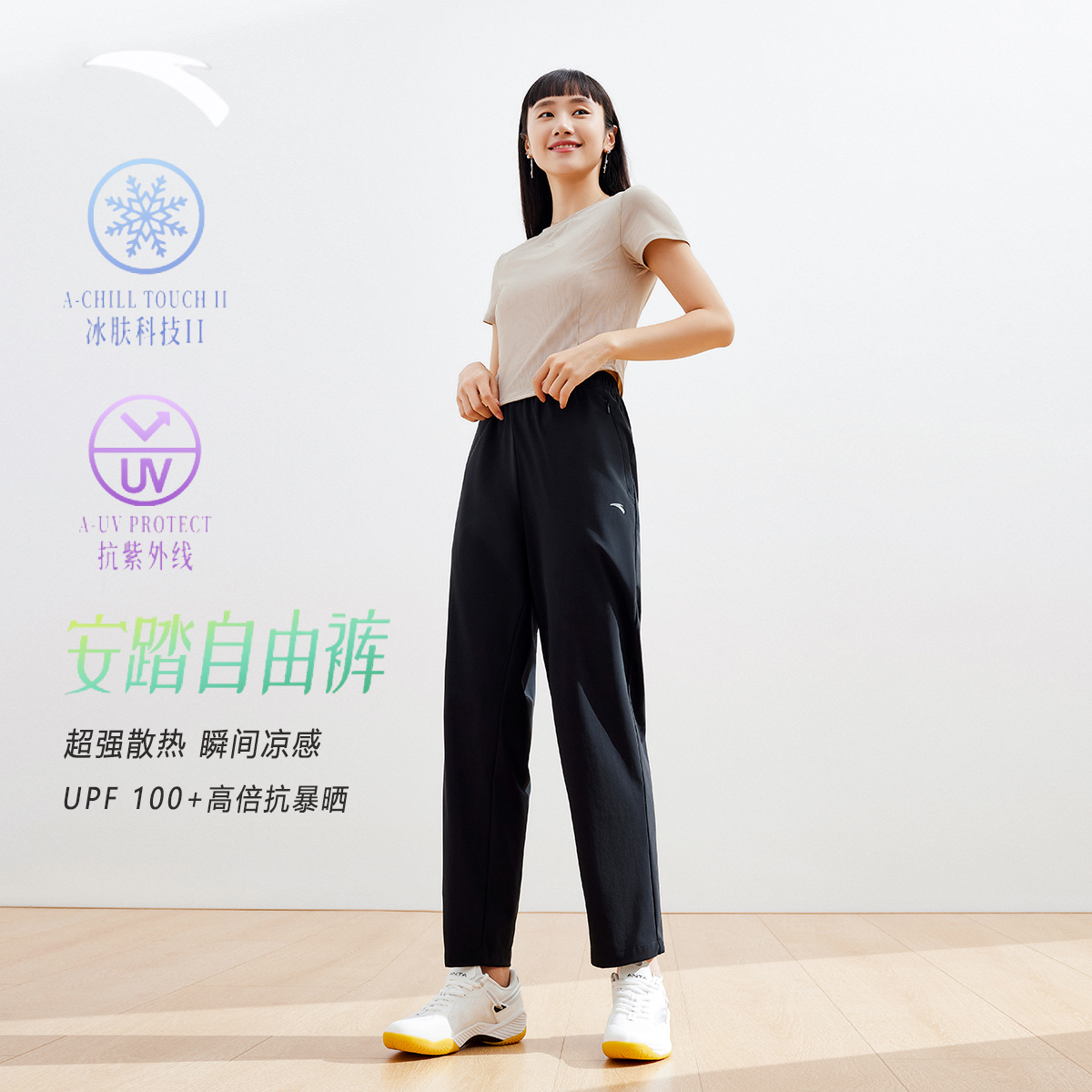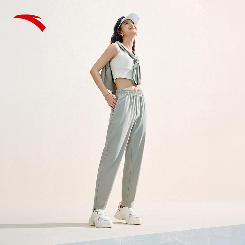 运动长裤 休闲跑步收口卫裤 女裤 透气黑色针织裤 子 秋季 安踏奶芙裤