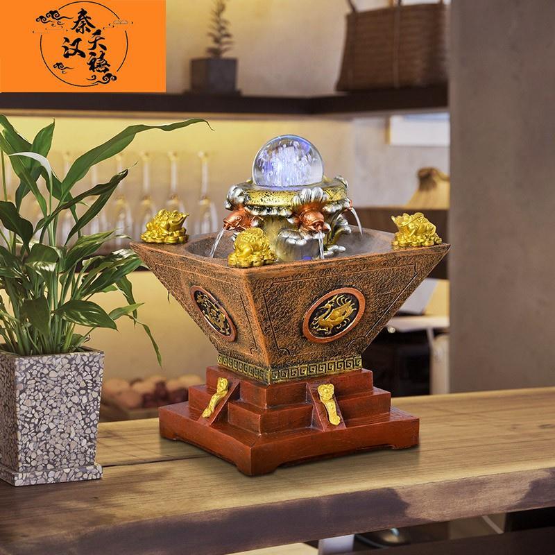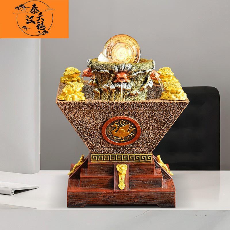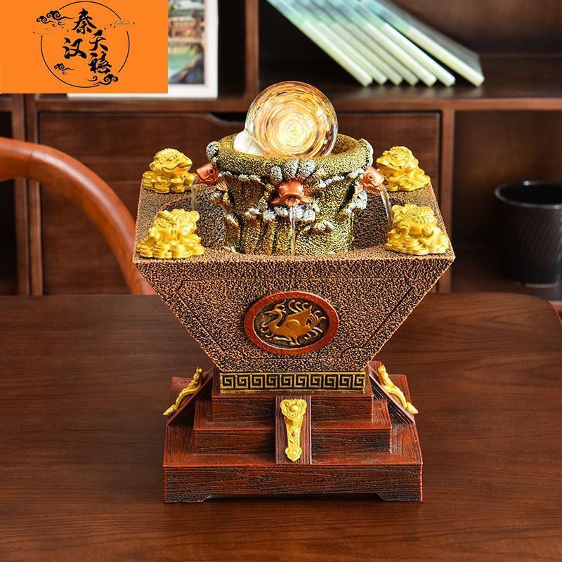 秦汉天禧客厅风水轮办公聚宝盆流水喷泉桌面摆件风水球办公室装 饰