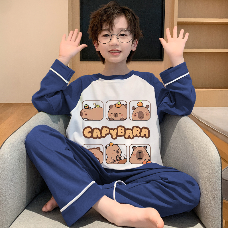 全棉初中学生家居服套装 纯棉卡通青少年秋天薄款 长袖 睡衣男春秋季