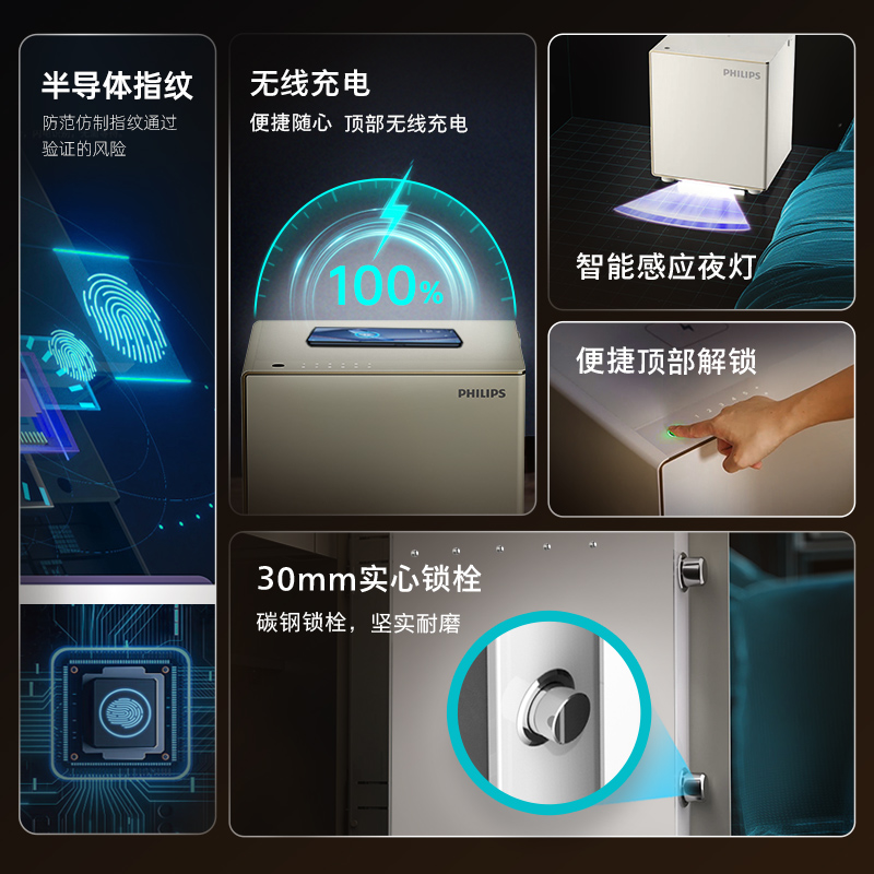 PHILIPS飞利浦300保险柜床头柜保险箱家用防盗智能密码 指纹识别柜