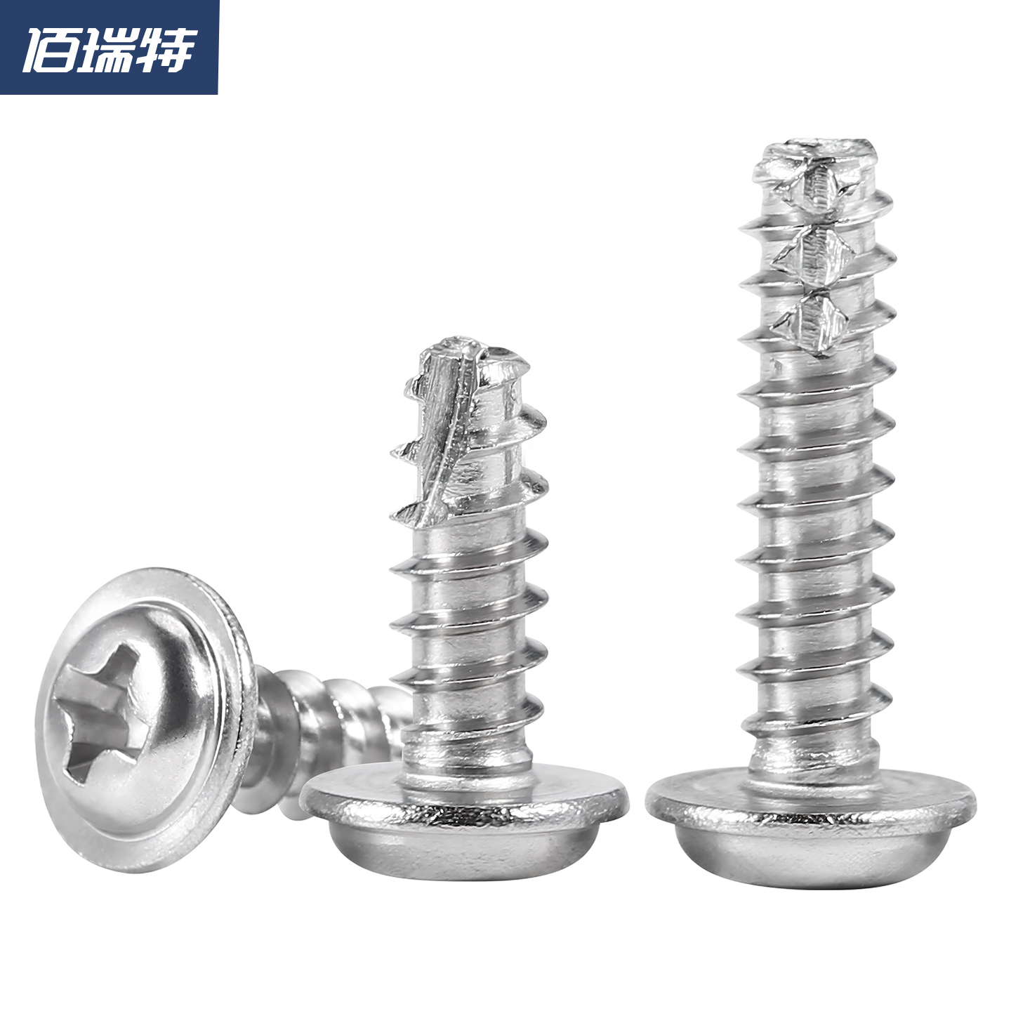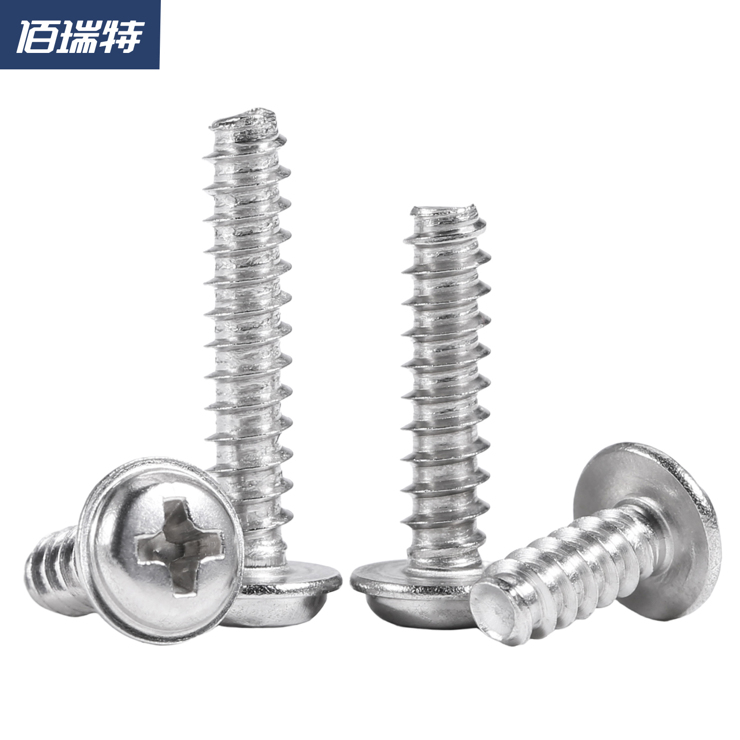 304不锈钢十字圆头带垫自攻螺丝平尾割尾尖木螺钉自攻丝M2M3M4M5