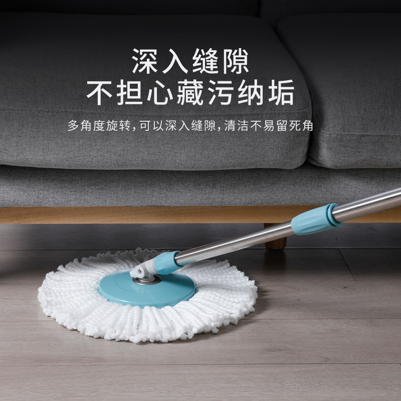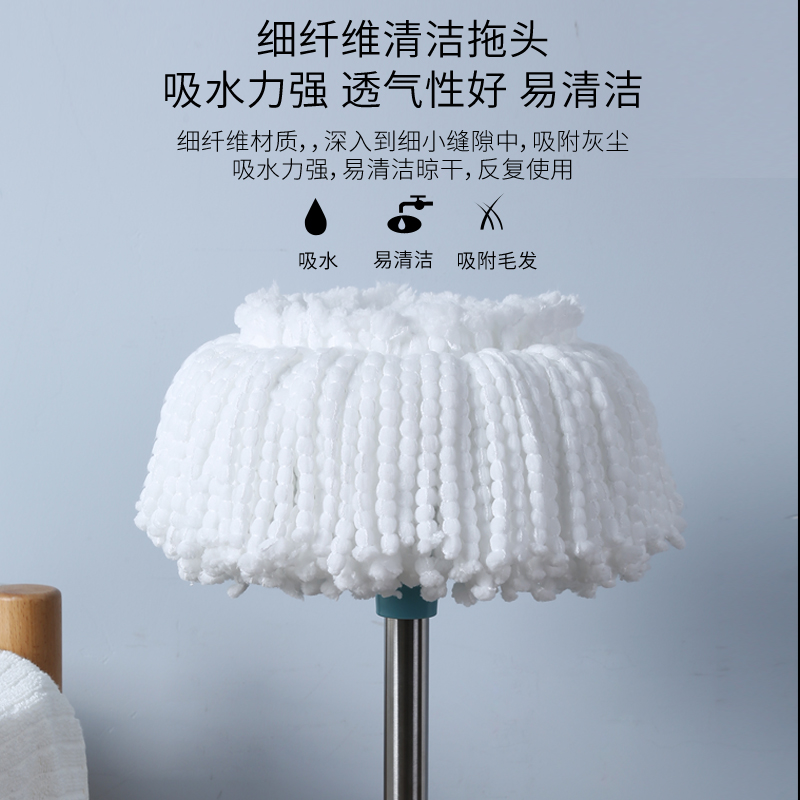 美丽雅旋转拖把杆配件手压式 拖把杆免手洗拖把墩布家用布头赠拖布