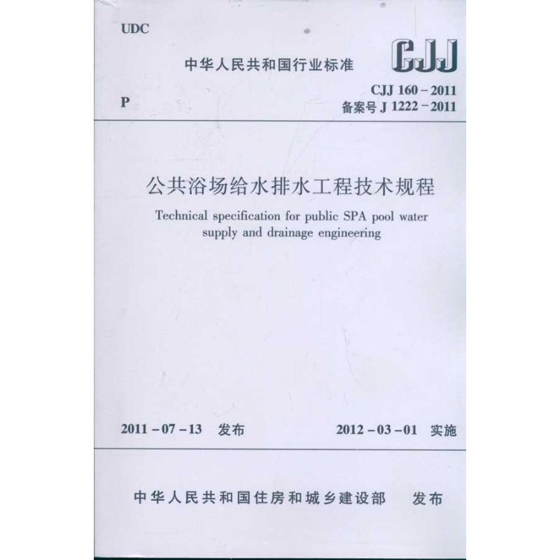 中华人民共和国行业标准 中国建筑工业出版 书籍 CJJ160 新华书店旗舰店文轩官网 正版 2011 著 公共浴场给水排水工程技术规程 社