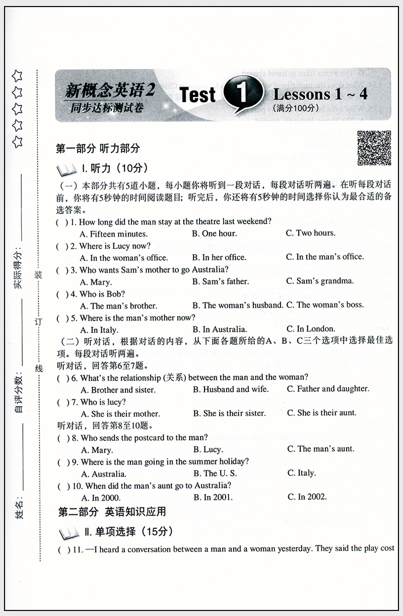 新概念英语2 同步达标测试卷 与新概念英语2学生用书配套辅导讲练测 正版 含参考答案 获取配套音频 现货 扫码 实践与进步
