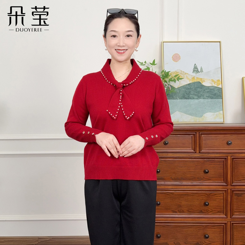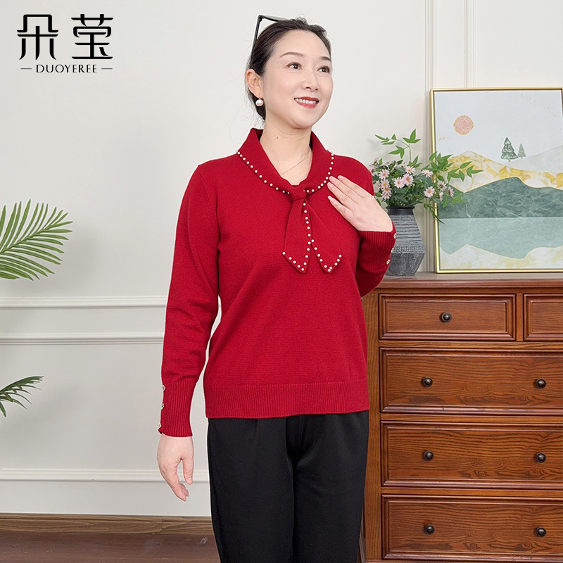 2025新款 针织衫 中老年女装 春秋季 上衣服 洋气妈妈秋装 打底衫 婚宴装