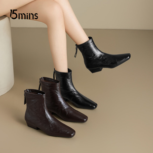 后拉链粗跟马丁靴瘦瘦靴子 秋季 15mins法式 气质低跟短靴女2025新款