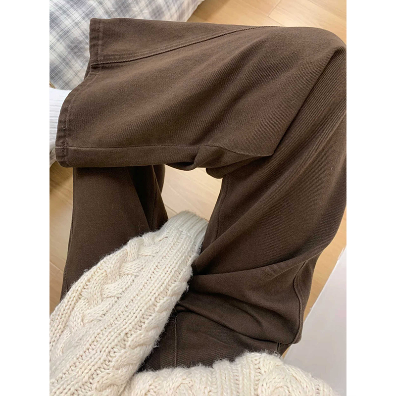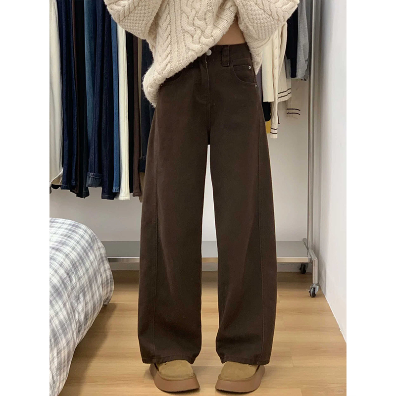 子梨型身材粗腿宽胯显瘦阔腿牛仔裤 弯刀裤 棕色裤 夏秋季 女2025新款