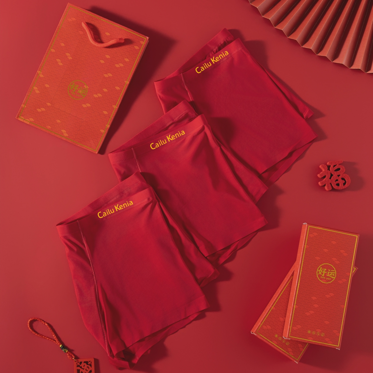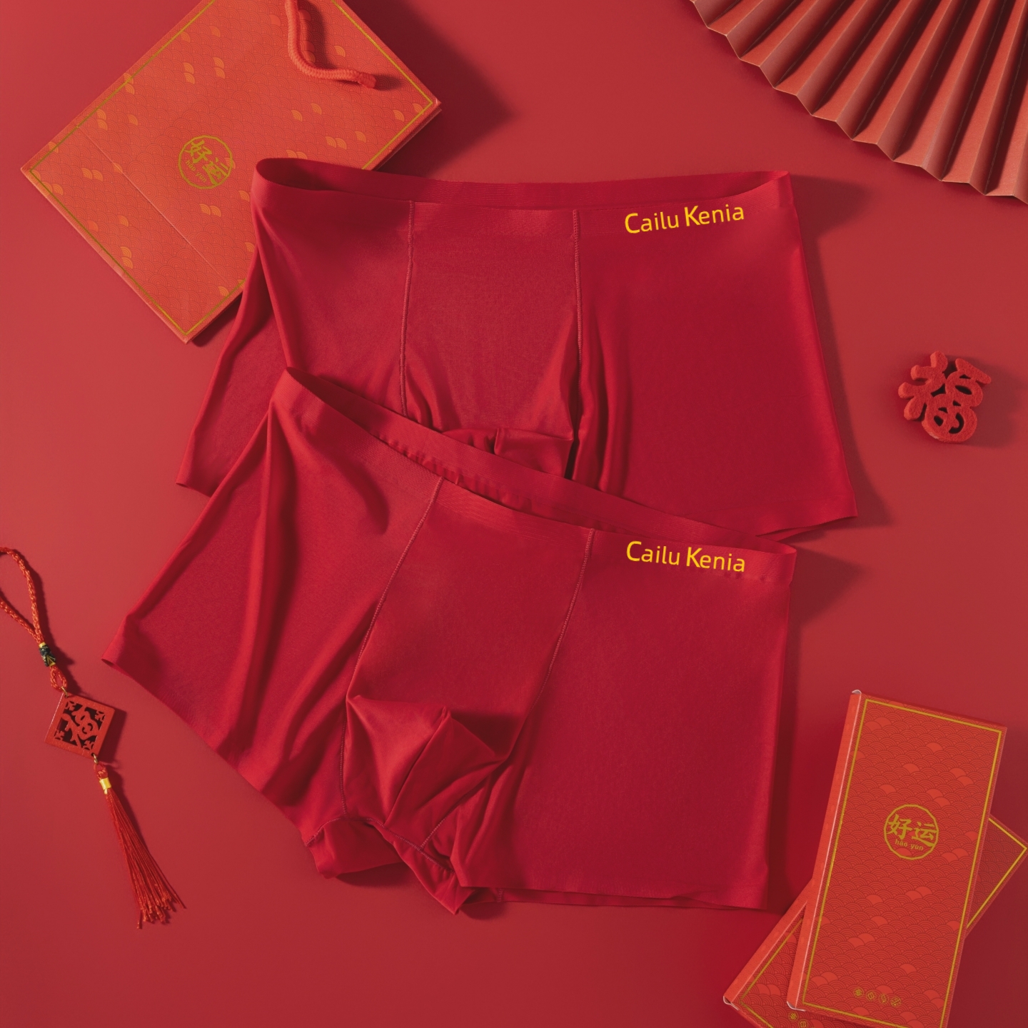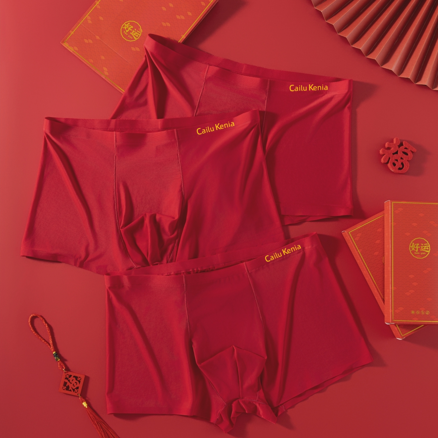 属马年结婚四角裤 礼盒装 冰丝无痕男生平角裤 男士 酒红色本命年内裤