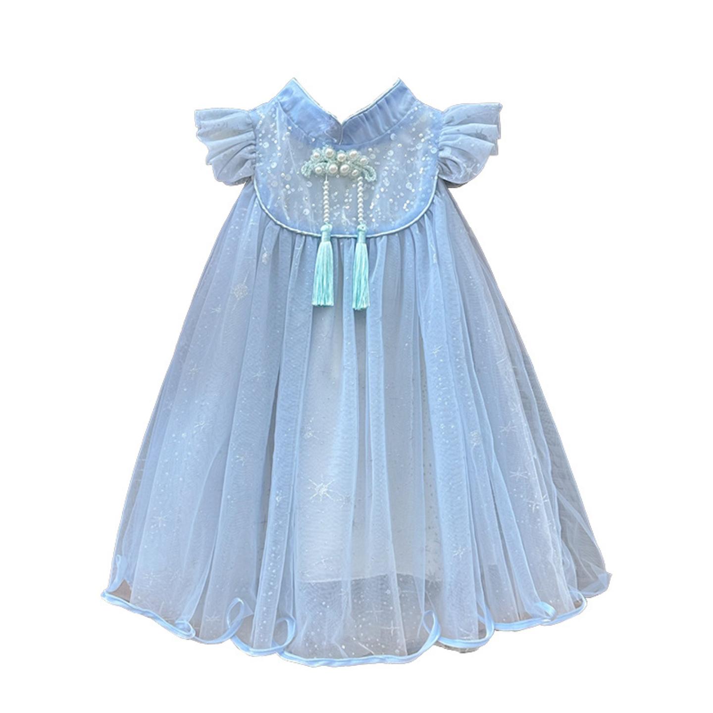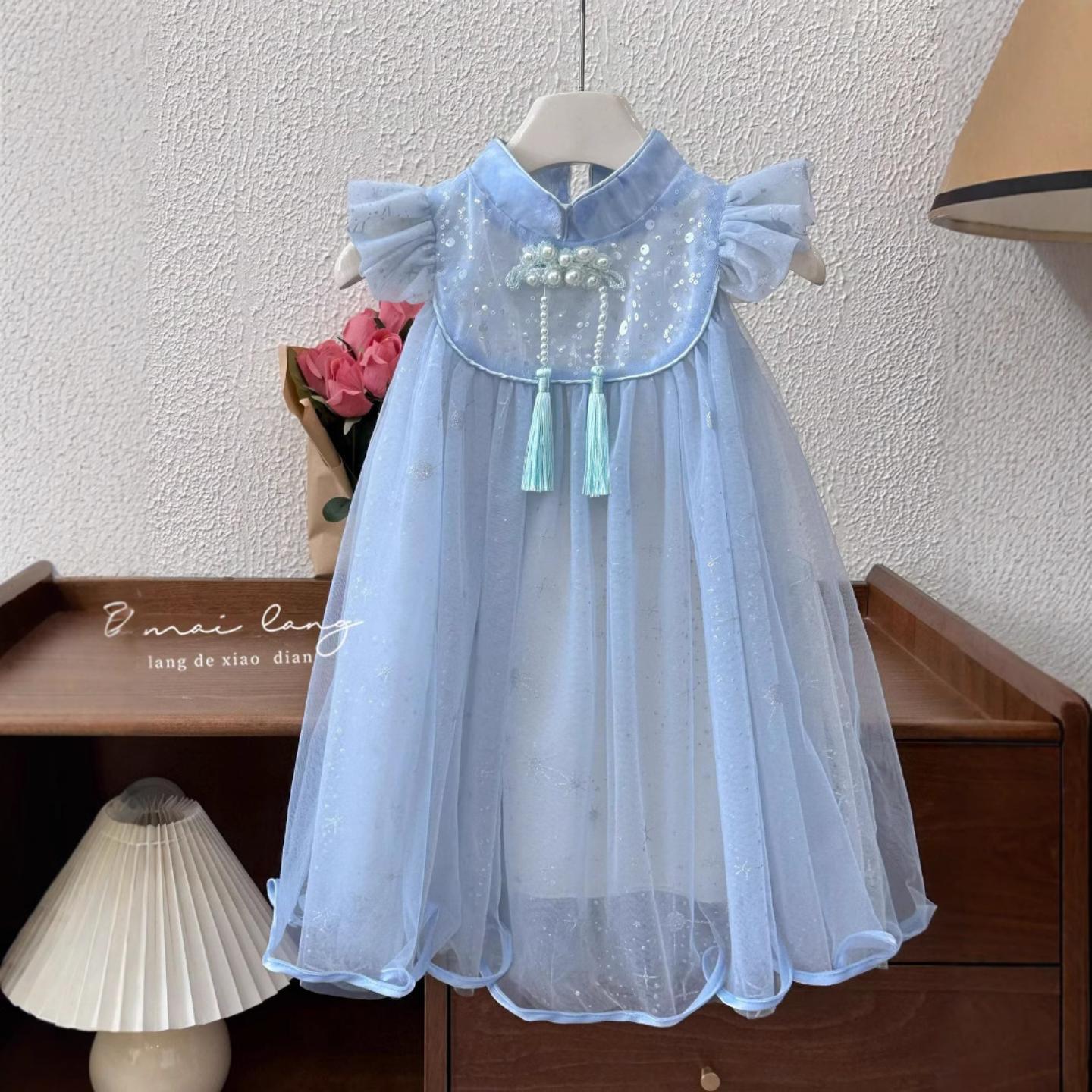 旗袍盘扣流苏网纱裙飞袖 新中式 女童连衣裙2025夏季 裙 现货秒发