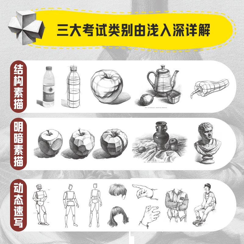 素描基础教程 经典 张恒国 几何石膏人像画法图文美术生素描考试详解 案例解析图书籍 零基础素描自学入门新手速成教程 升级第2版