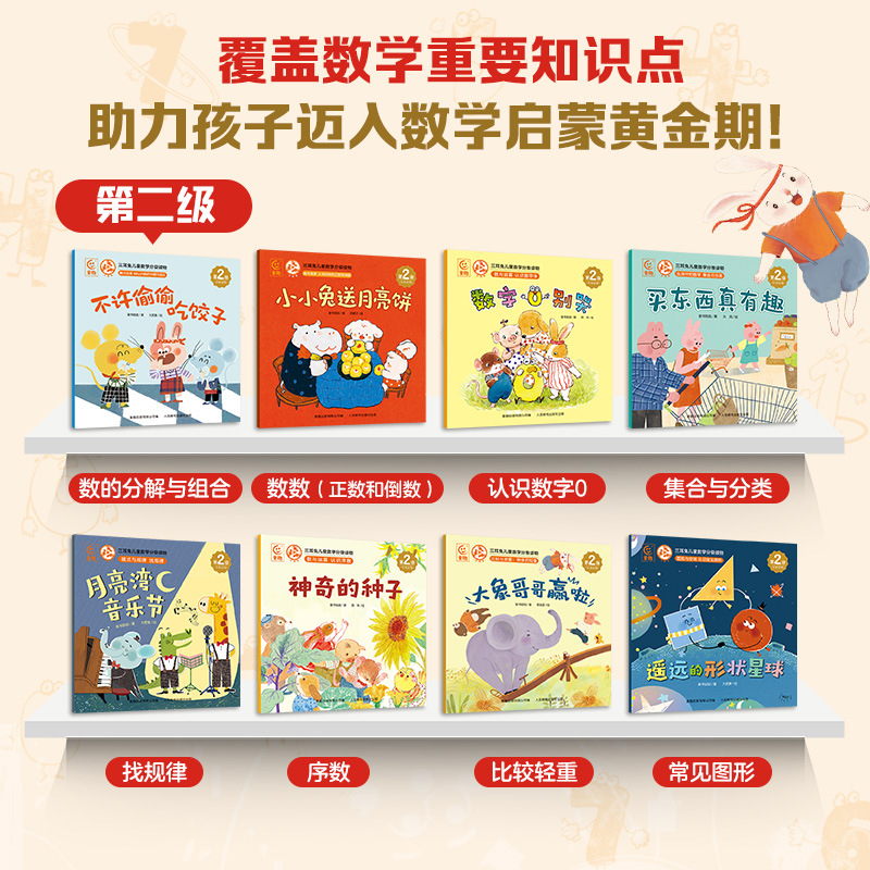 三耳兔儿童数学分级读物第1级第2级可点读全套16册适配童趣PollyBao点读笔 幼儿园教材小学生分级数学启蒙绘本阅读思维逻辑认数字