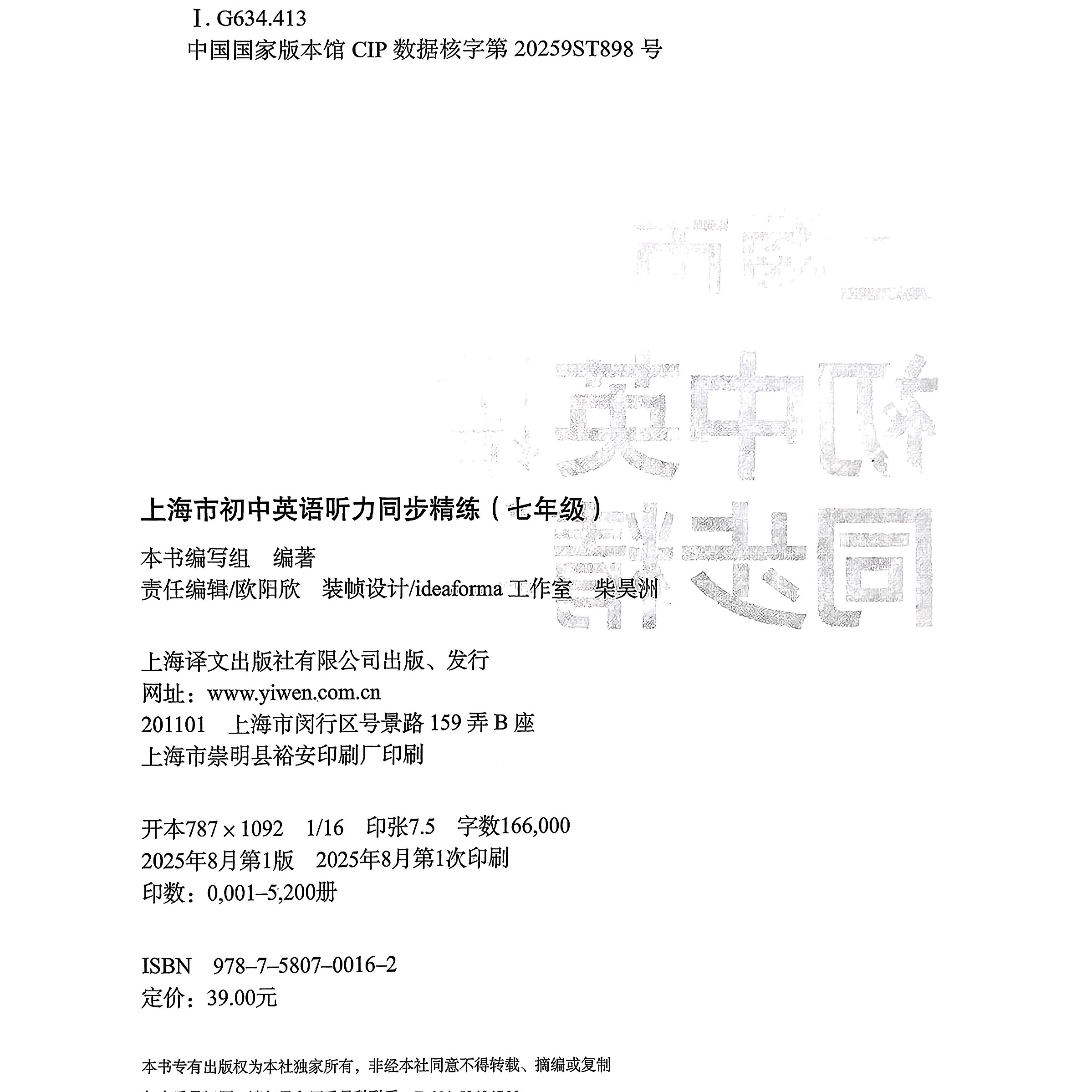上海市初中英语听力同步精练七年级新教材7年级精准对标中考听力题型分层训练提升听力核心能力单元 社 精炼阶段模考上海译文出版