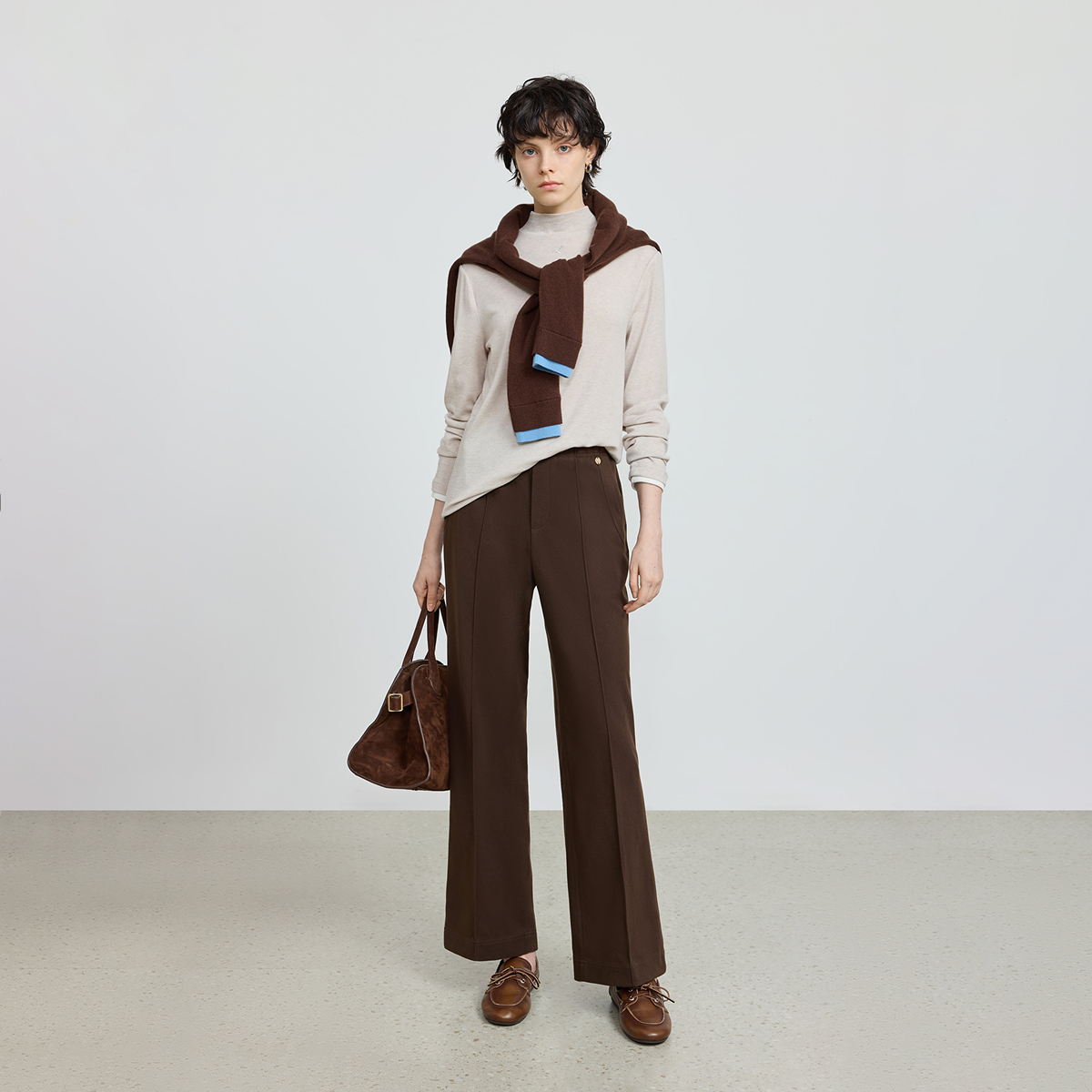 简约宽松弹力纯色百搭通勤加厚休闲直筒阔腿裤 LILY2025冬新款 女装