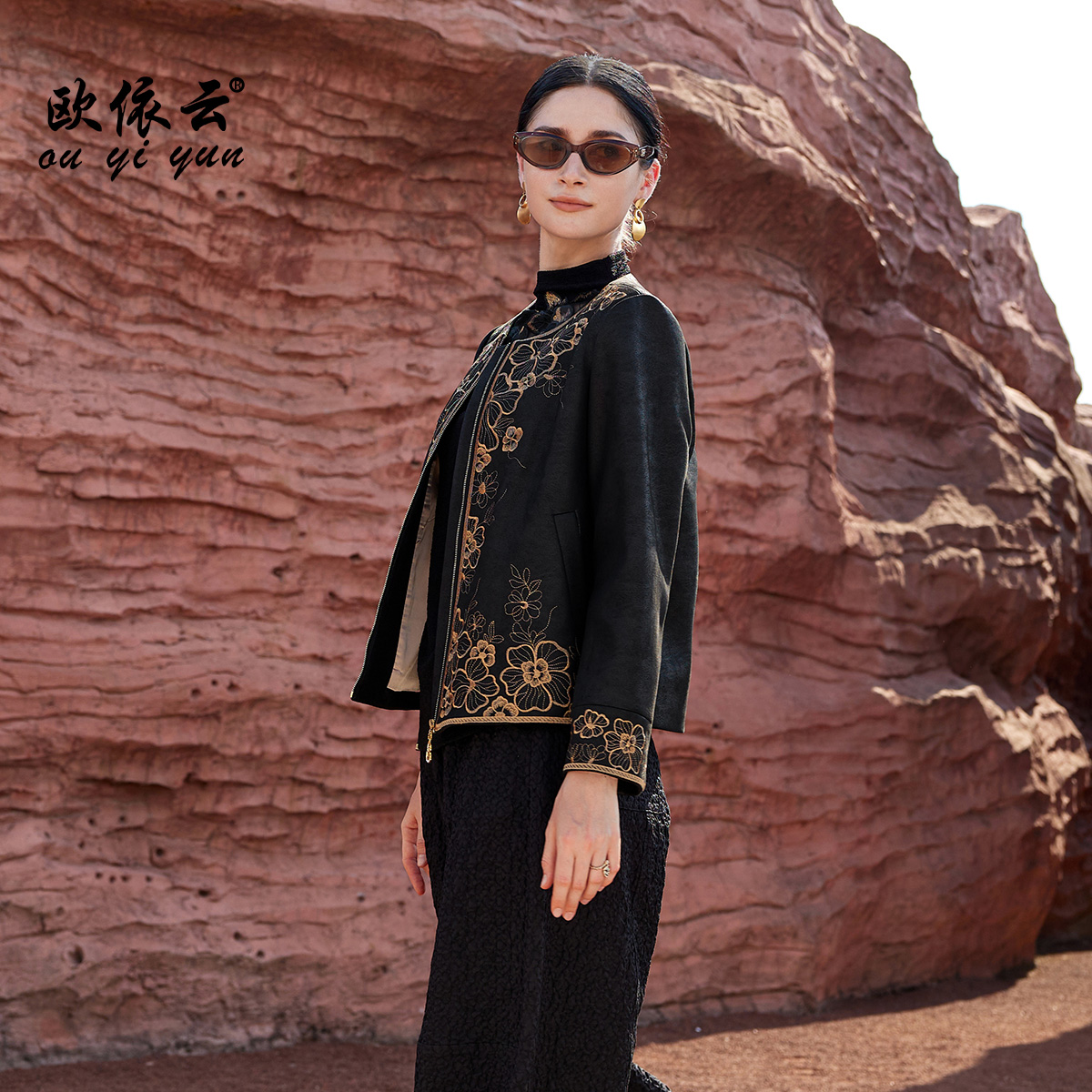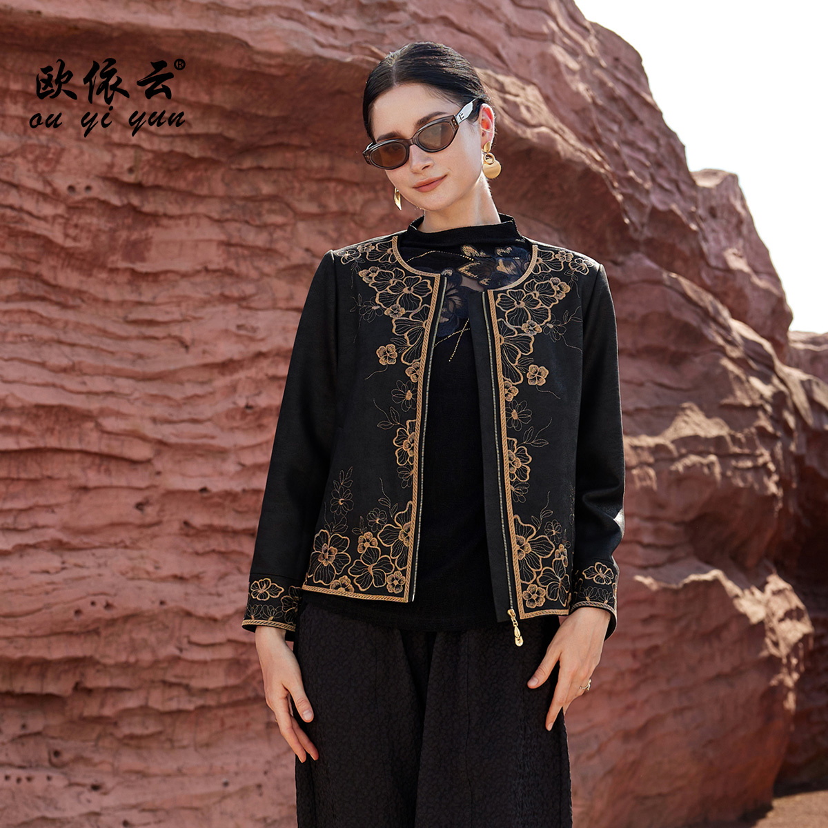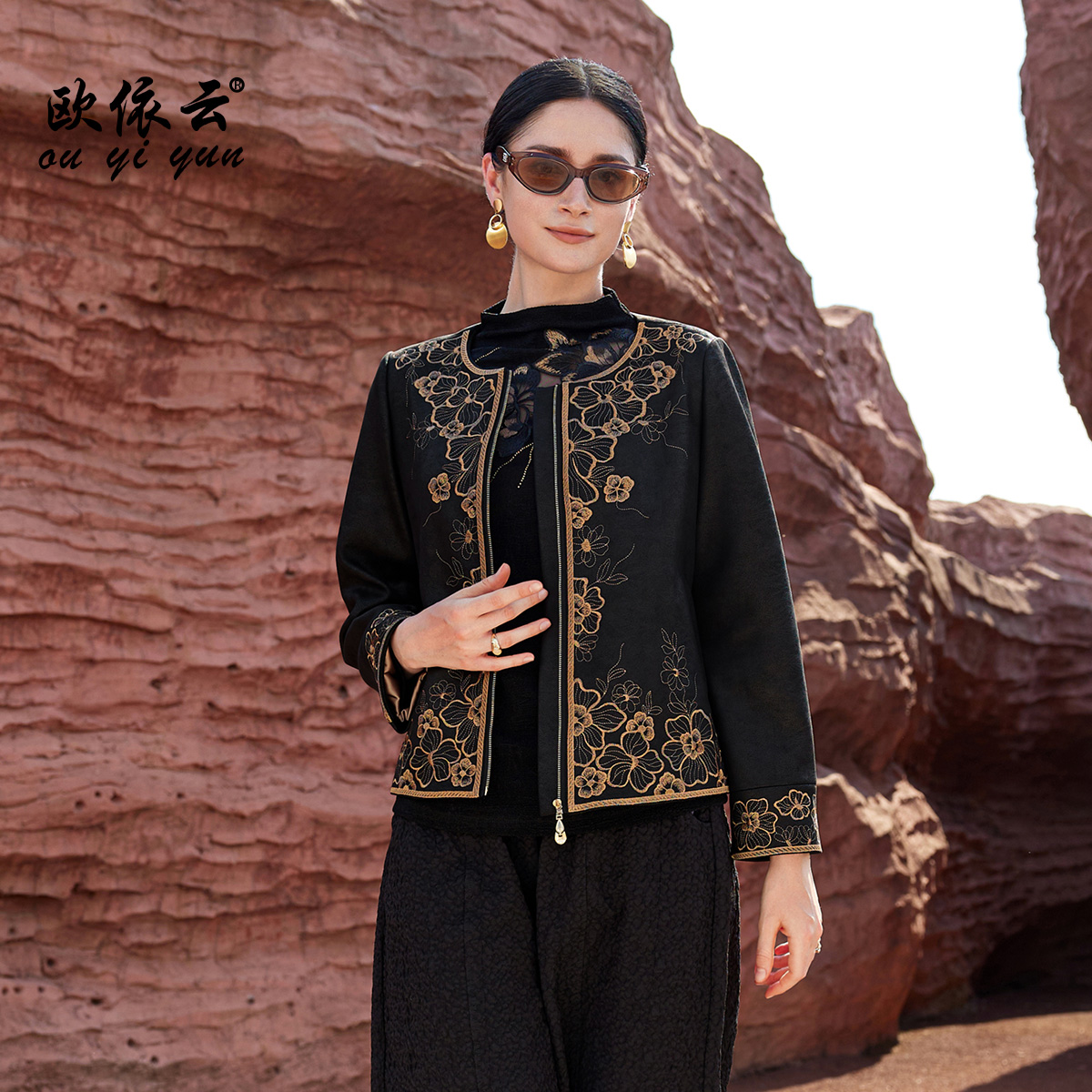 女2025新款 上衣开衫 长袖 欧依云高贵华丽气质短外套中老年妈妈秋装