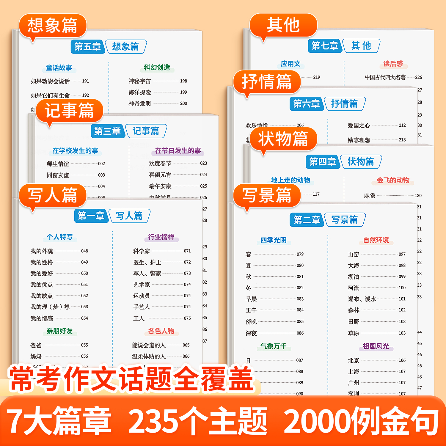作文金句2000例小学生语文作文素材好词好句好段词语积累归类大全一年级二三四五六初中生八百例优秀精选写作技巧用万能公式 800例