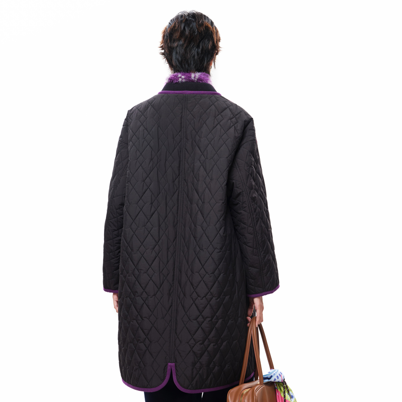 505877 英文字母立领宽松抽绳下摆上衣女装 三福棉衣2025冬季