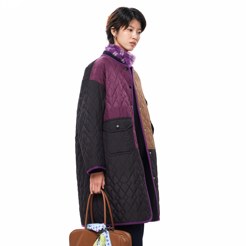 森马棉服女冬毛绒翻领手套宽松分割肌理2025新款 复古休闲棉衣 时尚