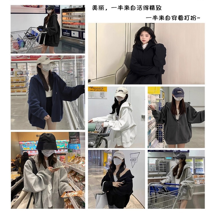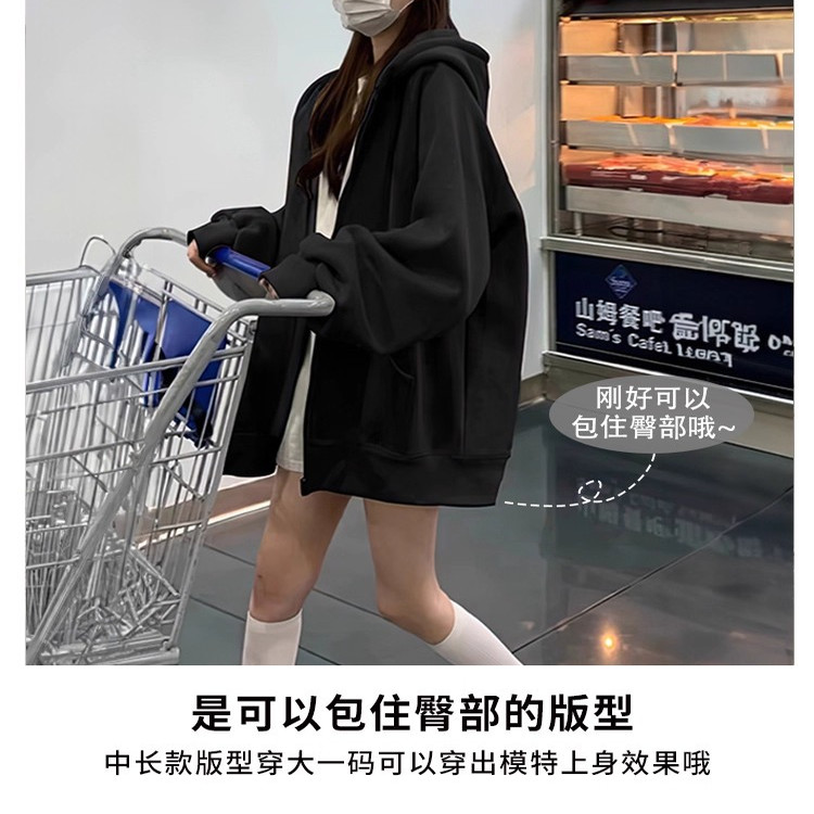 小个子简约纯色连帽卫衣女 外套2025年秋冬款 小众美式 洋气开衫