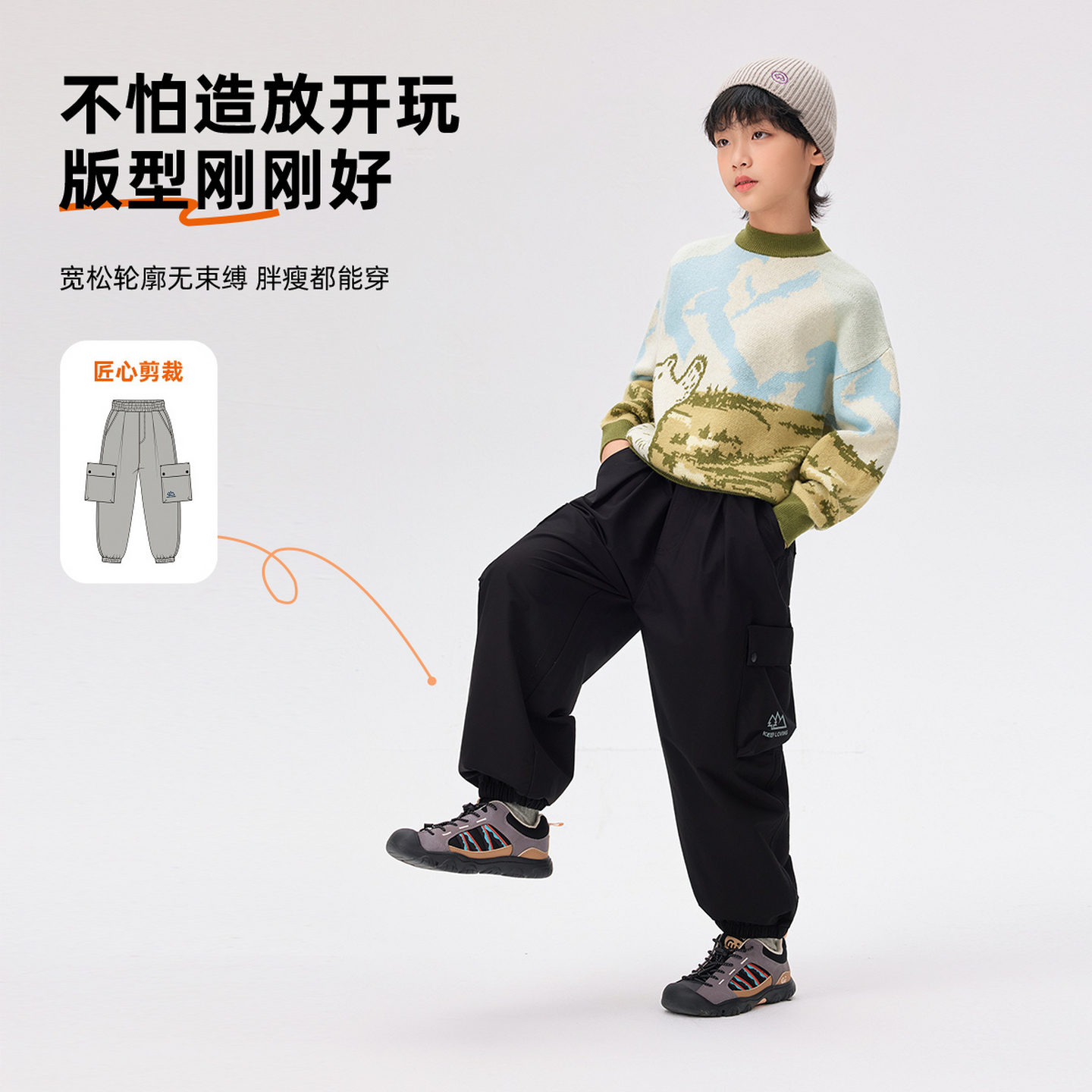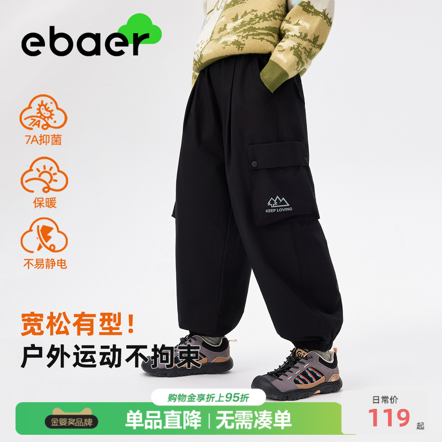 休闲裤 女童裤 2025冬装 男童加厚保暖长裤 子 新款 ebaer儿童加绒工装