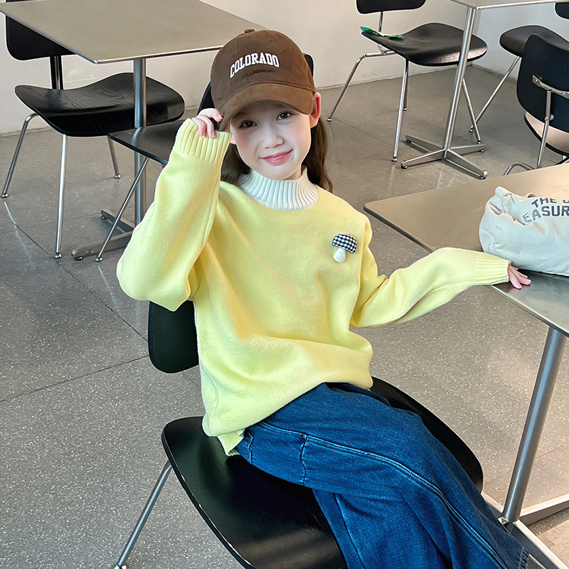 新款 加厚儿童高领洋气毛衣大童宽松潮搭针织衫 女童上衣2025冬装