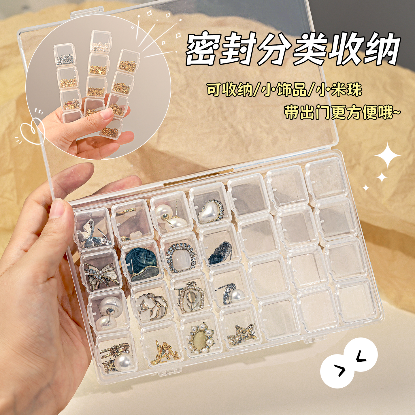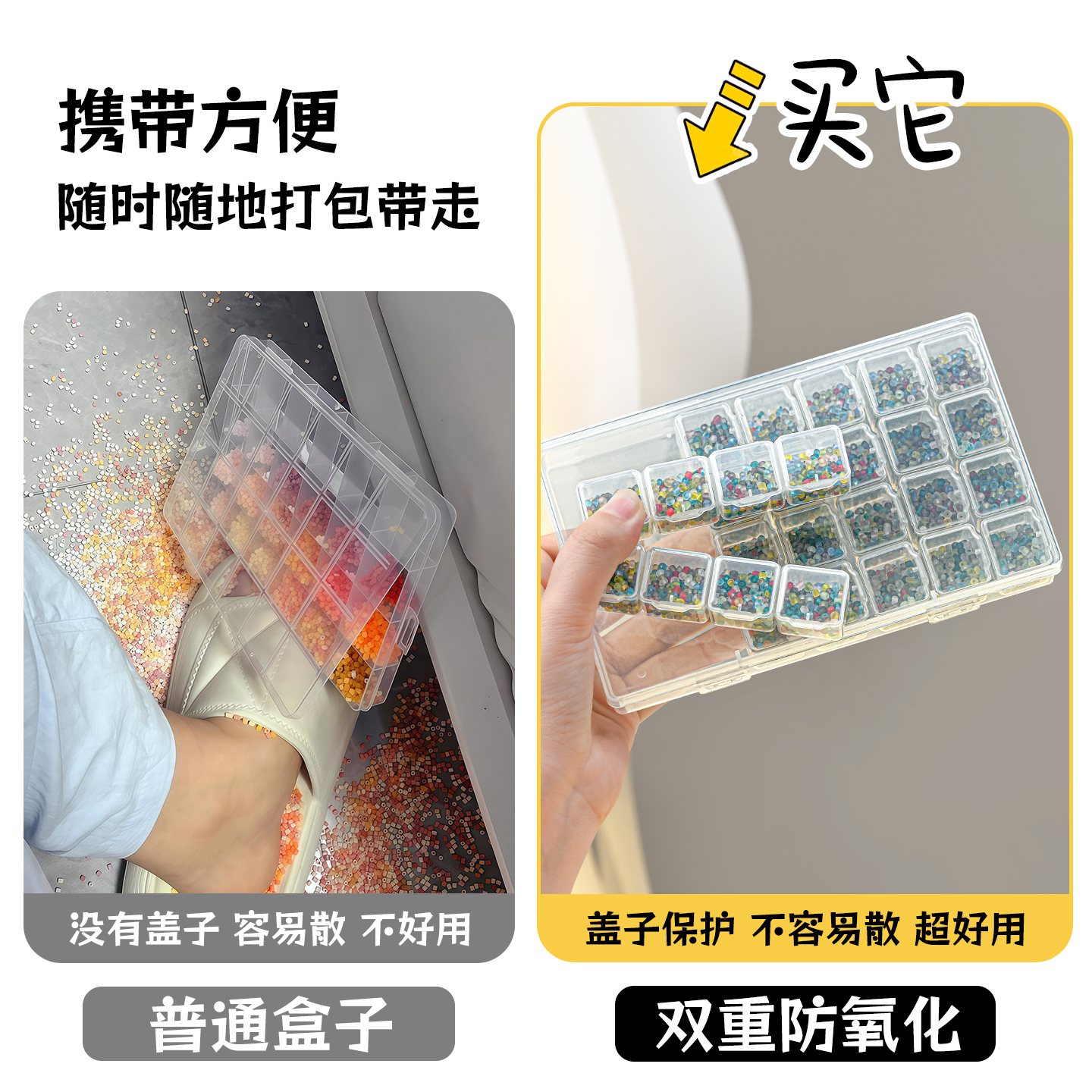 串珠收纳盒透明防氧化展示盒手工diy米珠水晶琉璃拼豆分装 整理盒