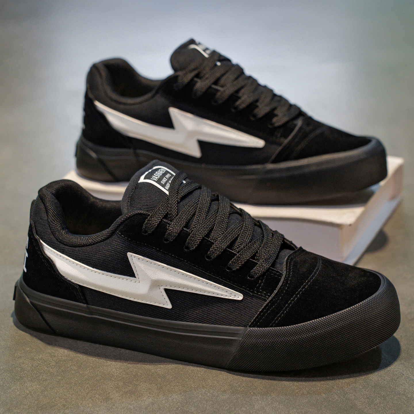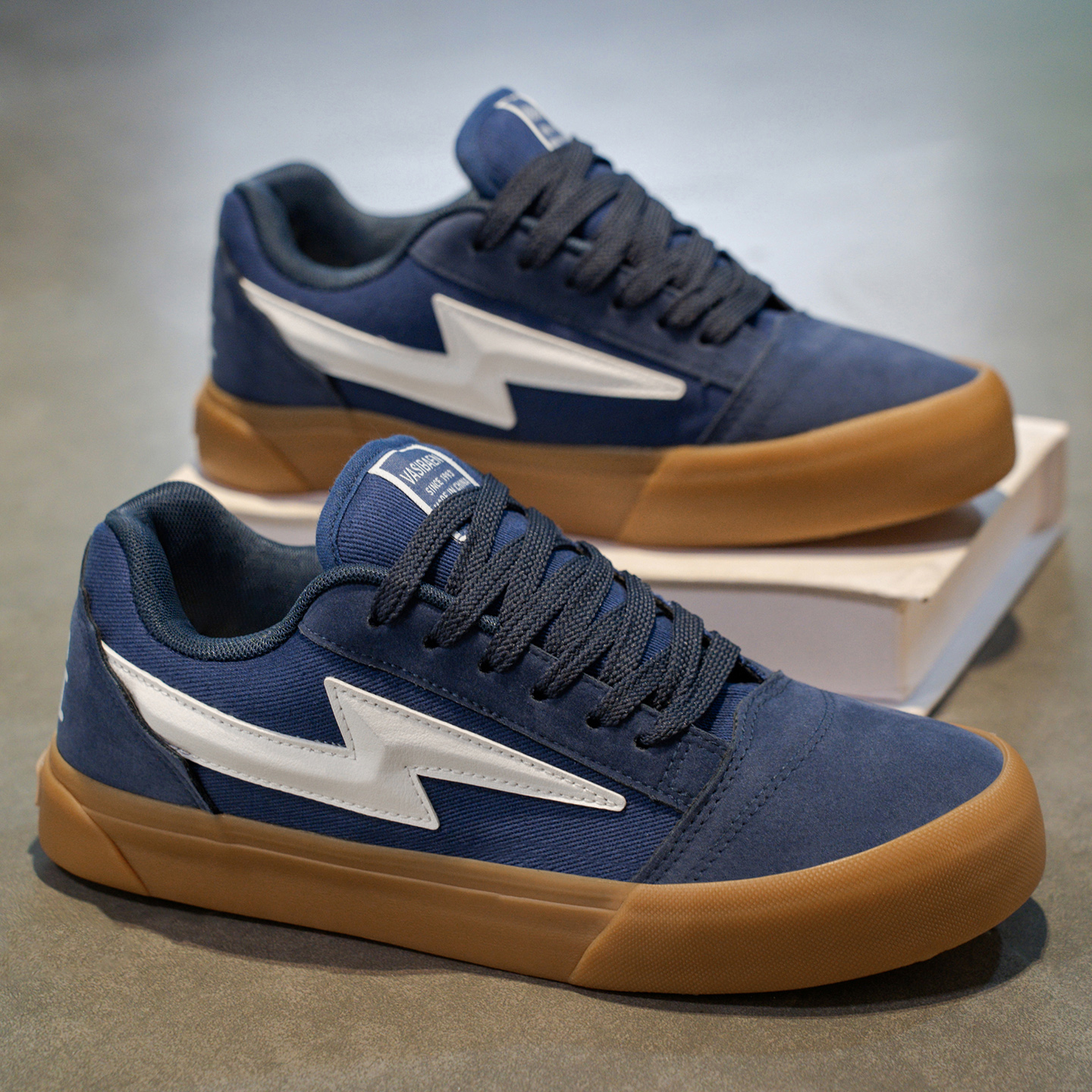 顽刻官方海军蓝春季 校园风W系列翻毛皮帆布拼接男女国潮滑板鞋