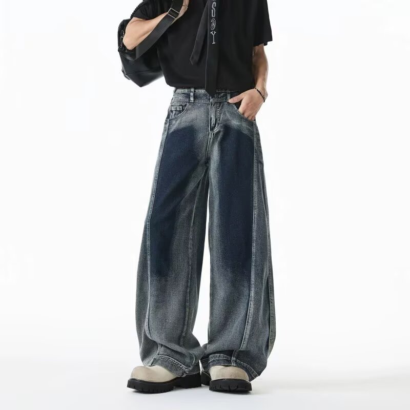 流行潮牌宽松阔腿裤 美式 2025夏季 男女同款 子休闲百搭 渐变牛仔裤