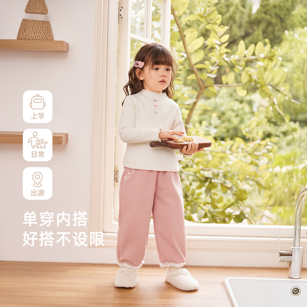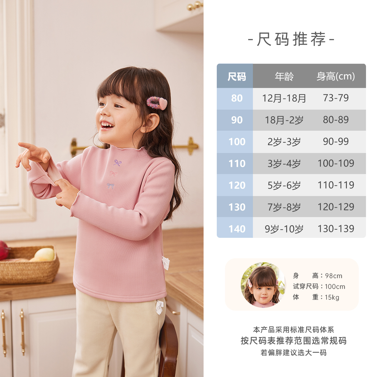 高领加绒打底衫 t恤6儿童法式 女童长袖 3秋冬宝宝衣服 抗菌远红外