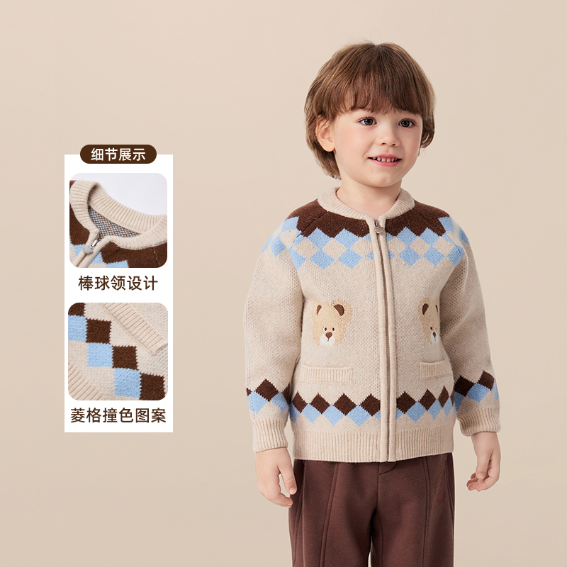 高级感外搭针织上衣H 新款 班尼路红色麻花开衫 毛衣外套女2025秋季