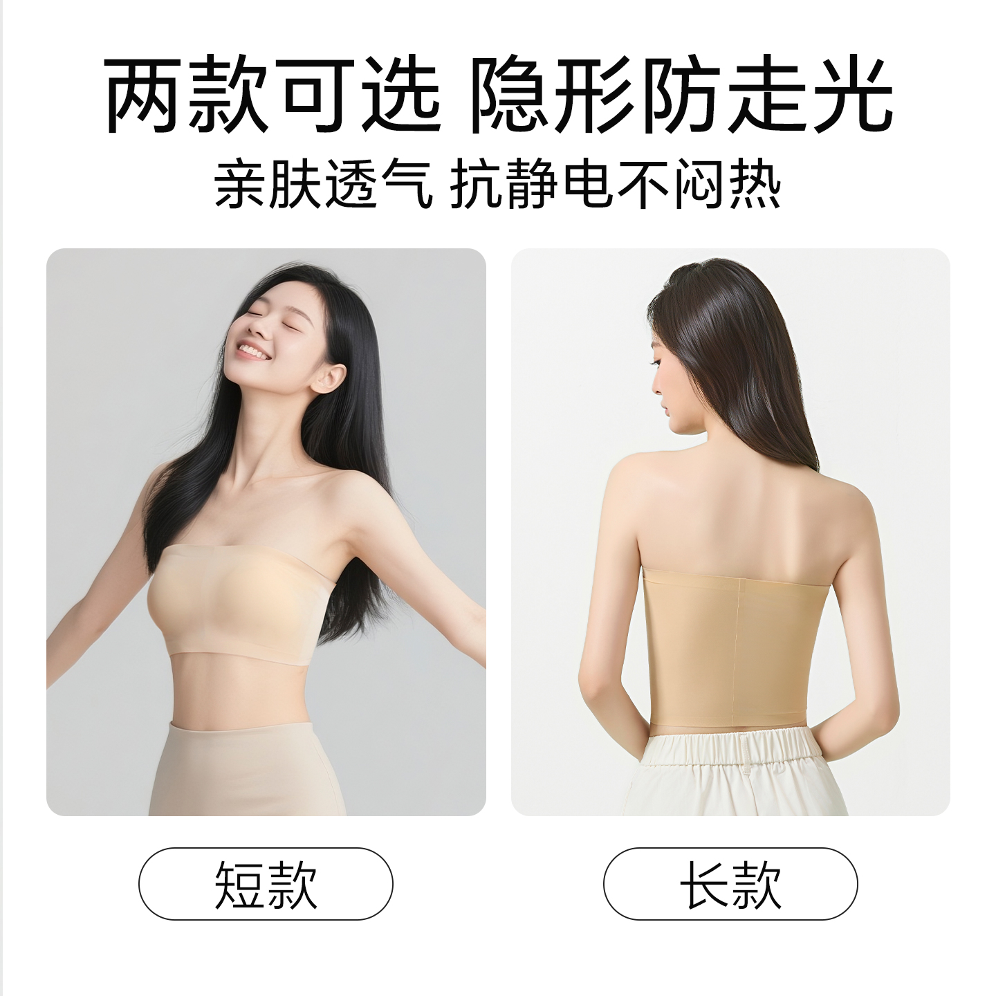 无肩带抹胸内衣女夏季 带胸垫防走光裹胸内搭无痕打底美背背心 新款