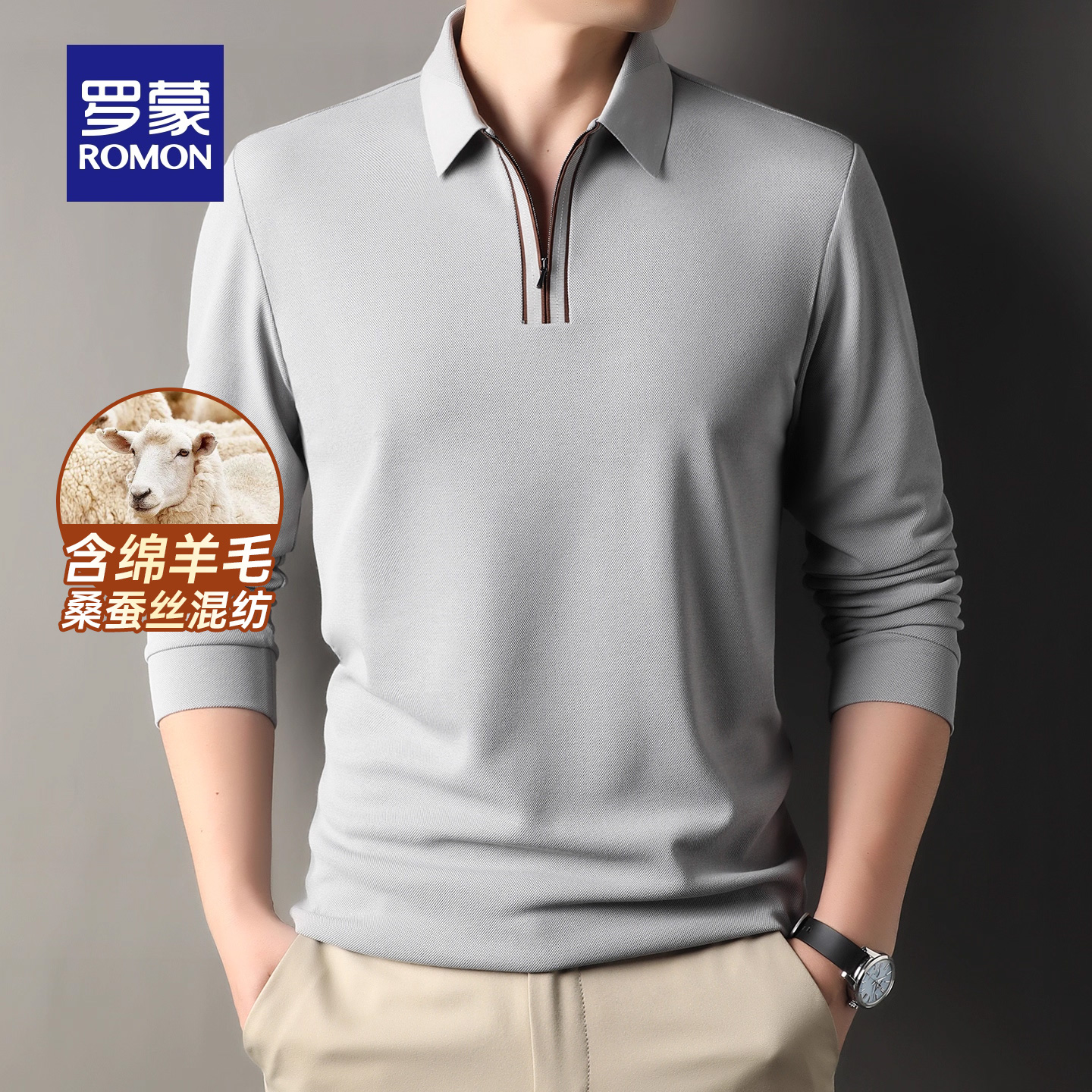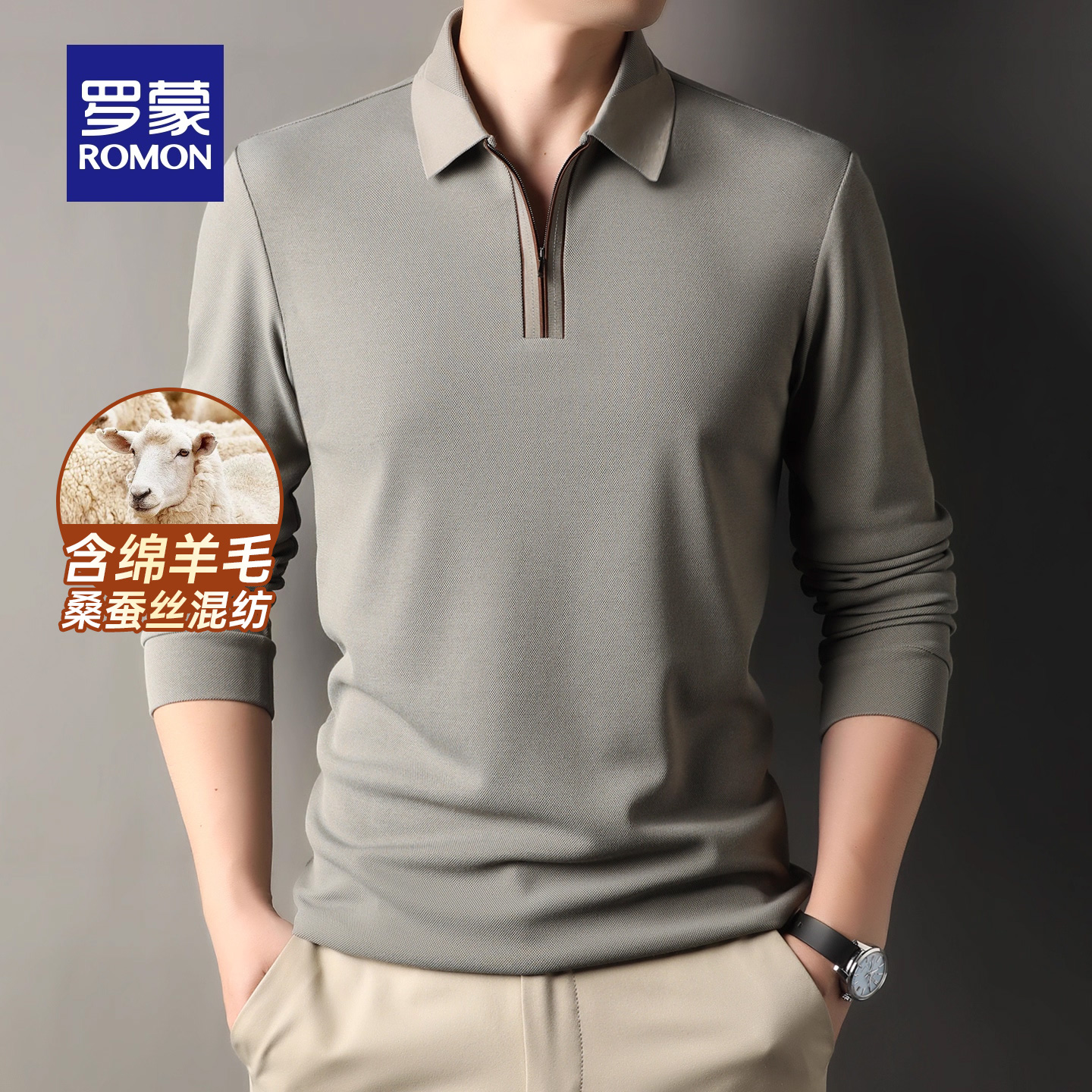 商务休闲2025秋季 polo衫 新款 翻领t恤男款 杉杉男士 纯棉打底衫 长袖