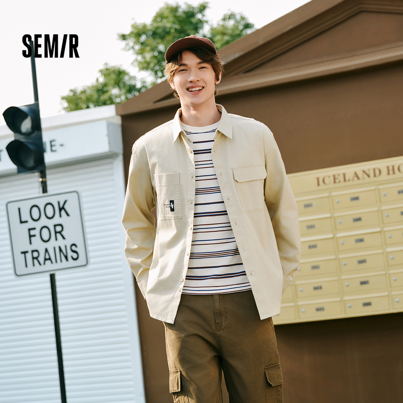 潮流山系工装 男秋季 风衬衣外套微弹字母印花翻领上衣 衬衫 森马长袖