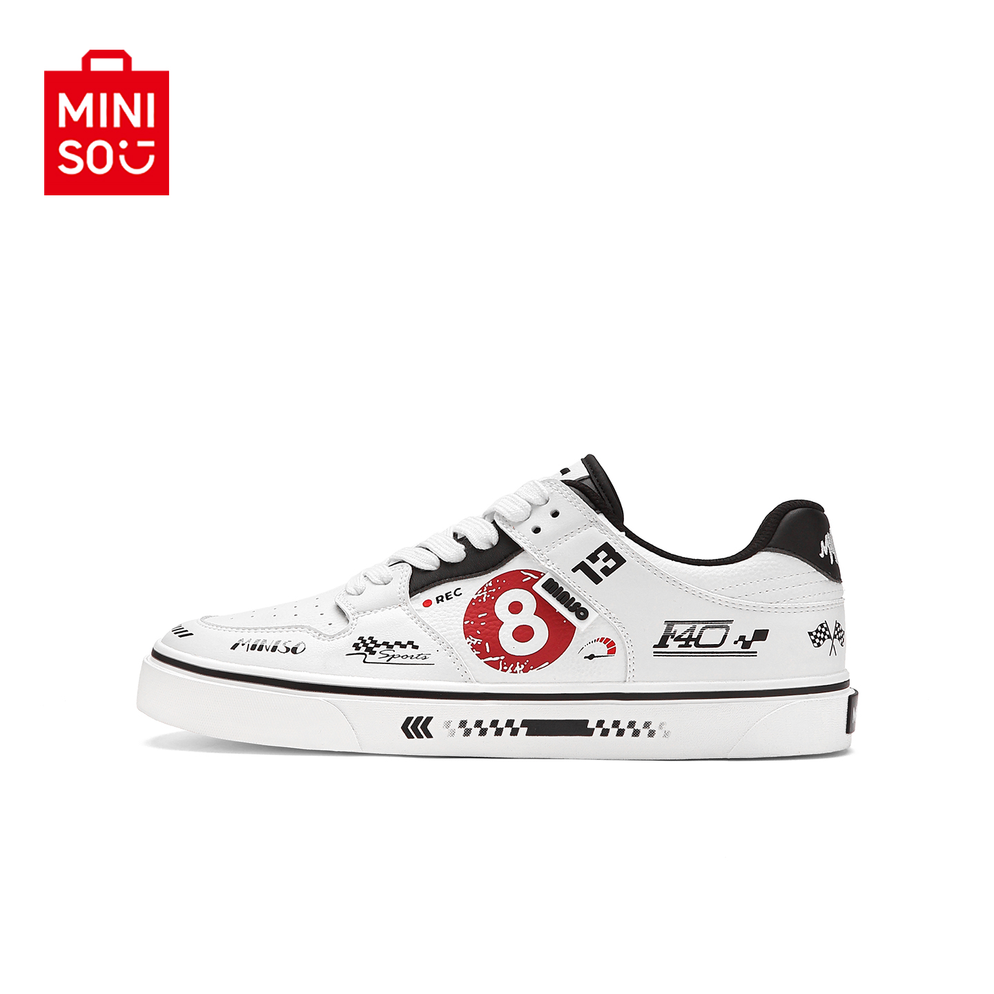 子男女款 运动休闲情侣潮流板鞋 秋季 平底小白鞋 美式 名创优品赛车鞋