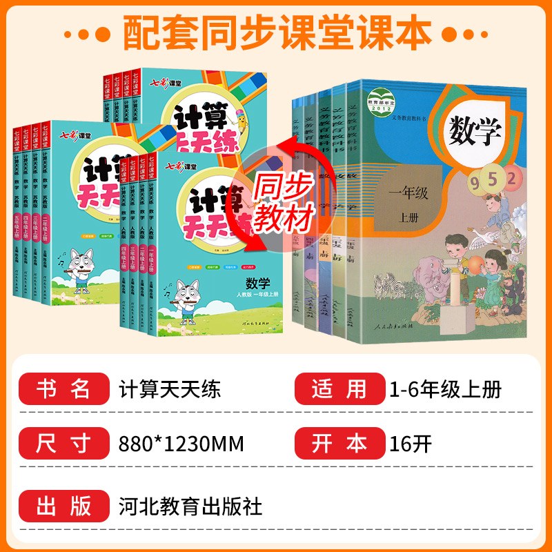 七彩课堂数学计算天天练一二三年级四五六年级上册下册人教版 小学同步练习册专项训练题口算速算题卡计算小能手应用题 北师大苏教