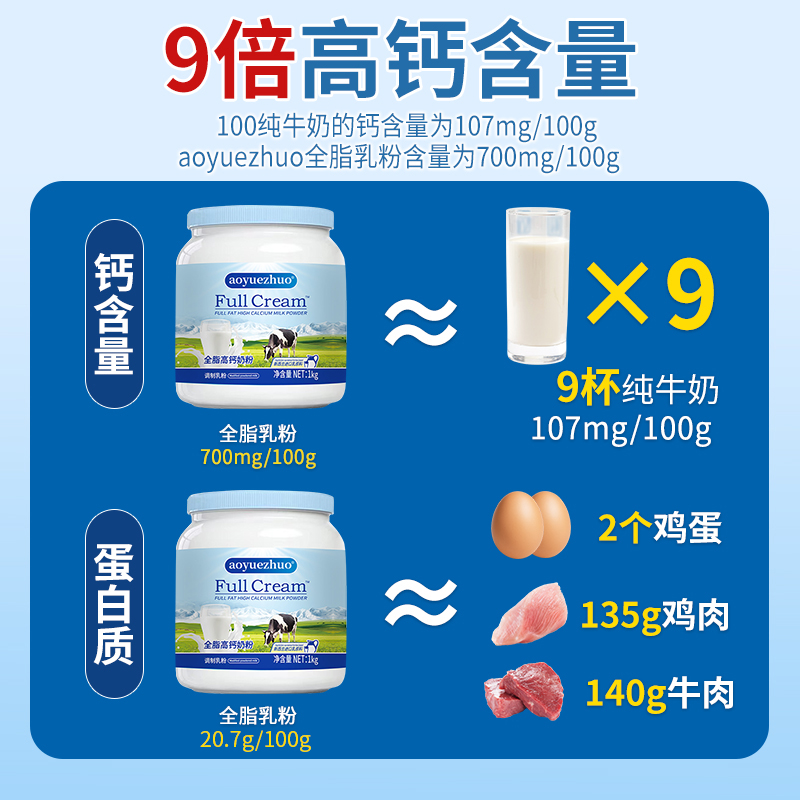 进口德运全脂高钙成人儿童全家营养牛奶粉1kg 澳洲原装 自营