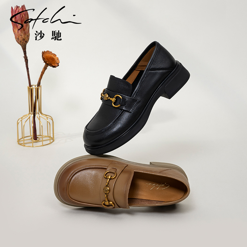 一脚蹬深口小皮鞋 沙驰女鞋 25年秋冬新款 女单鞋 舒适百搭通勤乐福鞋